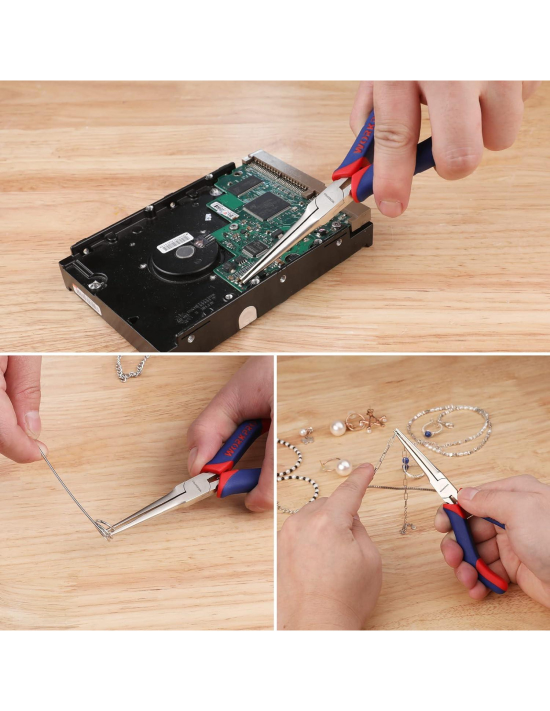 - Amplia aplicación: Los alicates de punta larga WORKPRO sobresalen en cortar, envolver, doblar, enderezar y dar forma para joyería, relojes, alambres, guitarras y reparaciones de relojes. Desde la fabricación de joyas hasta reparaciones de relojes, son invaluables para una amplia gama de proyectos de manualidades