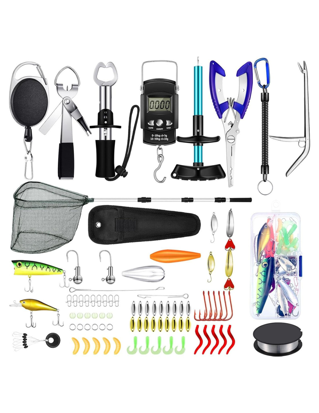 - Un Favorable Ayudante de Pesca: este kit de herramientas de pesca es una combinación completa; Recibirás una red de pesca con mango telescópico, una herramienta para quitar anzuelos, un cebo, una herramienta para quitar anzuelos, un agarrador de labios, una balanza para pescar, una pinza de pesca con funda y 2 piezas de cordones para pinzas de pesca
