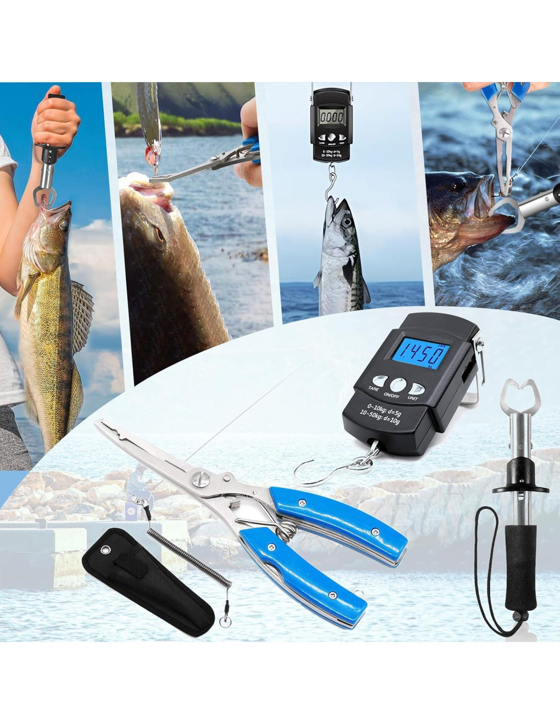 - [Combo de Herramientas de Pesca] El Set de Herramientas de 3 piezas XBLACK incluye herramientas de pesca esenciales-Alicates de Pesca, Agarrador de Labios de Pez y Balanza de Pesca con funda y cordón.