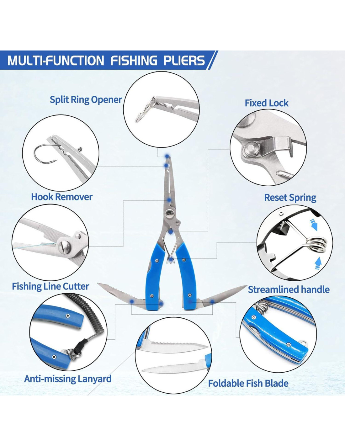 - [Acero Inoxidable Resistente] Los alicates de pesca están hechos de acero inoxidable resistente a la corrosión. Estos alicates de pesca son ideales para entornos de agua dulce y agua salada.