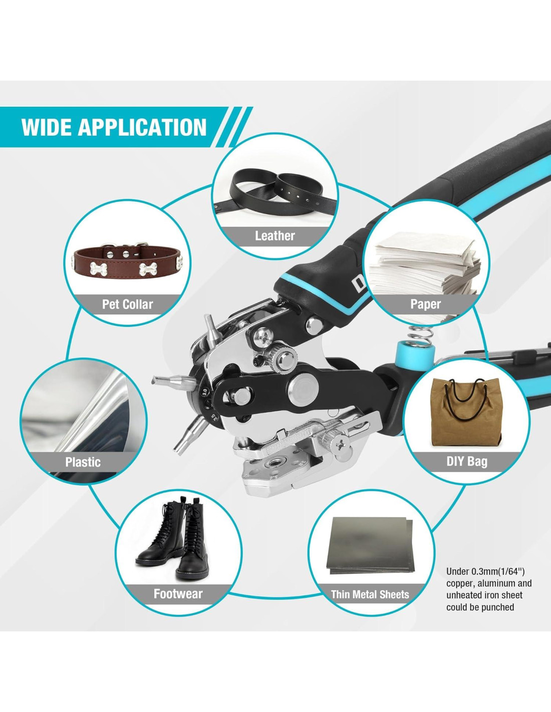 - AMPLIAS APLICACIONES: Muy adecuado para creadores de manualidades, amantes del bricolaje. Obtenga el ajuste y la comodidad correctos añadiendo agujeros adicionales para ajustar su ropa y cinturones, bolsas, pulseras de reloj, sillas de montar, collares de mascotas, tarjetas de tienda, etc. Herramienta de perforación para suministros de oficina así como para mejoras en manualidades en casa.