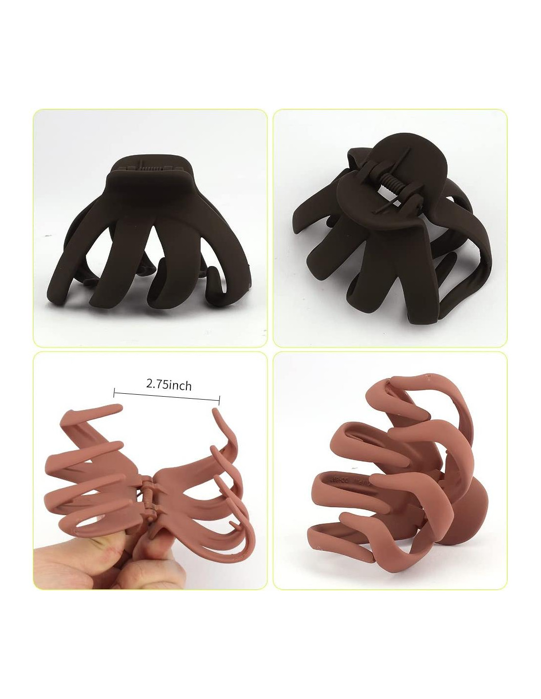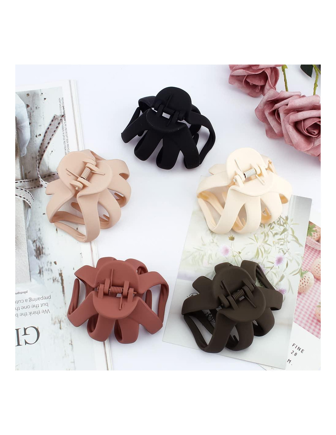 - [Pinzas grandes para el cabello] Puedes obtener 5 piezas de grandes pinzas de pulpo para el cabello. Tamaño grande: 3.15 x 2.76 x 1.97 pulgadas (8 x 7 x 5 cm), excelente para volumen de cabello largo y grueso. 5 colores sólidos disponibles, puedes elegir el color según tus atuendos.