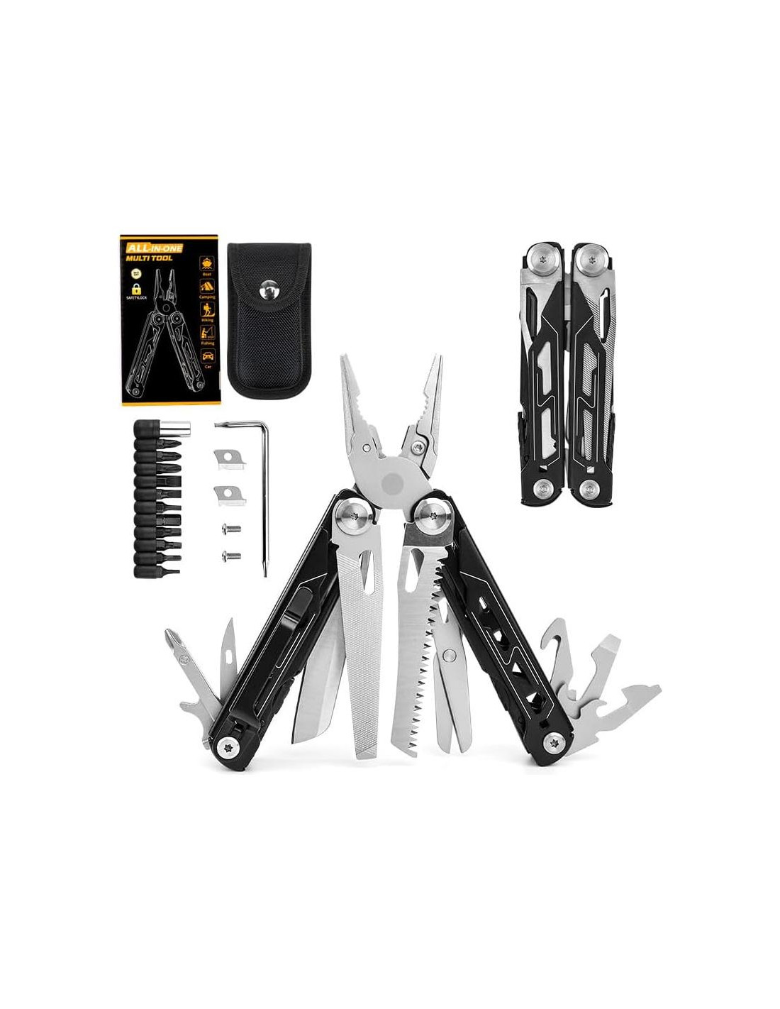 - Plegable y Portátil Este alicate multiherramienta con tamaño compacto es fácil de poner en tu bolsa o bolsillo, con una funda de nylon, puedes atarlo al lazo del cinturón. Se puede llevar a cualquier lugar, como camping, montañismo, ciclismo, tours en auto, aventuras al aire libre.