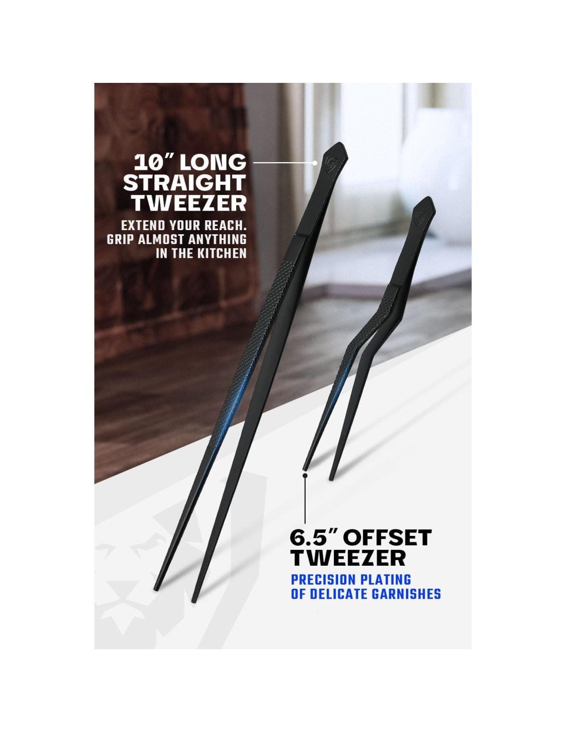 - Precisión y Agarre Seguro: Disfruta de un control inigualable con estas pequeñas tenazas para cocinar. Fabricadas en acero inoxidable de alto carbono con un elegante recubrimiento de titanio negro, manejan fácilmente alimentos delicados y guarniciones.