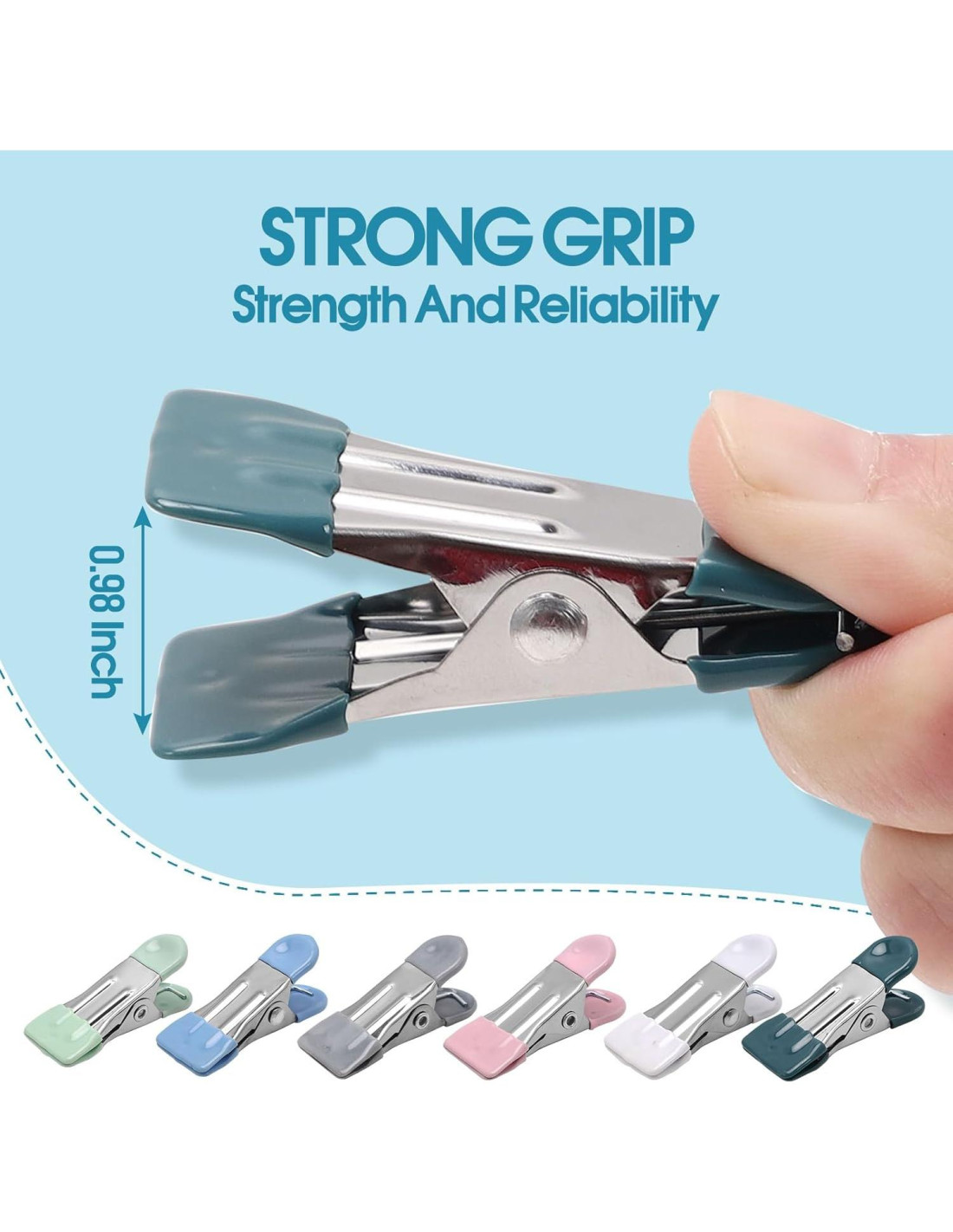 - Fuerte Sujeción: Estos clips de bolsa de metal tienen una excepcional fuerza de agarre, con una apertura de 2.54 centímetros (0.98 pulgadas) que hace que la pinza sea lo suficientemente grande y robusta para sostener artículos pesados como suéteres y jeans. Incluso en días ventosos, la ropa no se deslizará ni será arrastrada