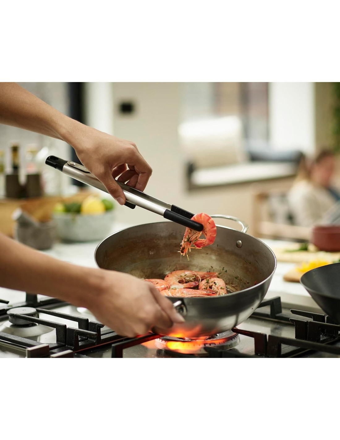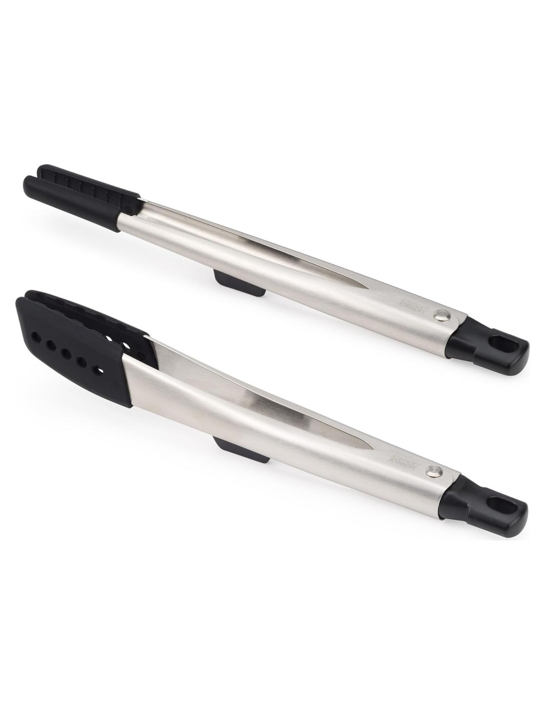 Un gran par de pinzas son una pieza esencial del equipo de cocina y este inteligente conjunto de 2 piezas te brinda el doble de beneficio. Incluye dos estilos de pinzas; primero un par con puntas de precisión que son perfectas para manejar alimentos delicados y, segundo, un par con puntas más grandes que son ideales para agarrar alimentos más voluminosos. Ambos tienen brazos de acero inoxidable bloqueables con soportes de herramientas integrados, diseñados para evitar que las puntas toquen la superficie de trabajo cuando se colocan. Esto no solo mejora la higiene, sino que también ayuda a reducir el desorden durante la cocción. Las puntas de silicona de ambos son resistentes al calor hasta 270C (520F) y perfectas para usar con todo tipo de utensilios de cocina, incluyendo los antiadherentes.