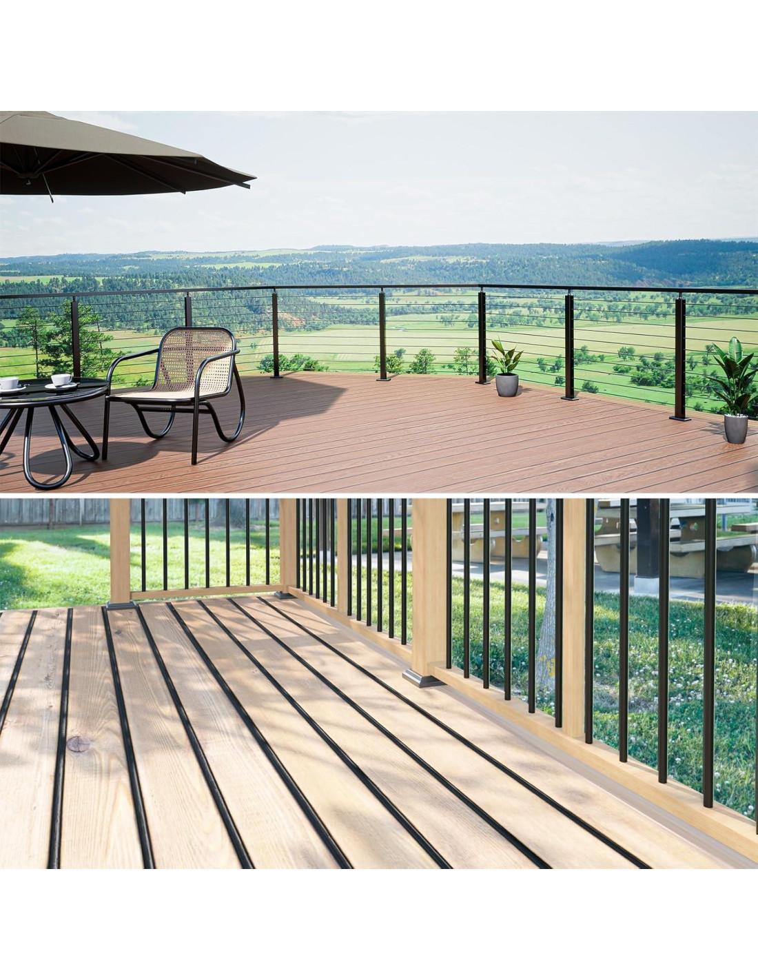 - Espaciado Uniforme: Los sujetadores ocultos de Muzata aseguran espacios consistentes entre los tableros del deck. Esto no solo crea una apariencia ordenada, sino que también logra circulación de aire y drenaje, manteniendo un aspecto limpio y estéticamente agradable del deck
