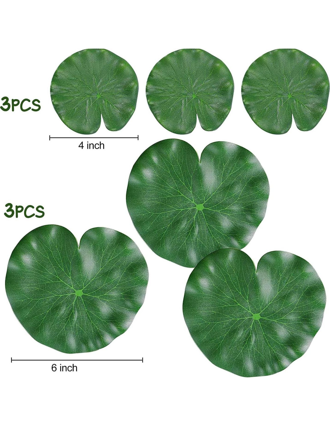 - Paquete Suficiente: Recibirá 3 hojas de lirio de gran tamaño: 4 pulgadas (10.16 cm) (3 pcs) y 6 pulgadas (15.24 cm) (3 pcs). Suficiente para reemplazar y enriquecer la decoración del estanque.