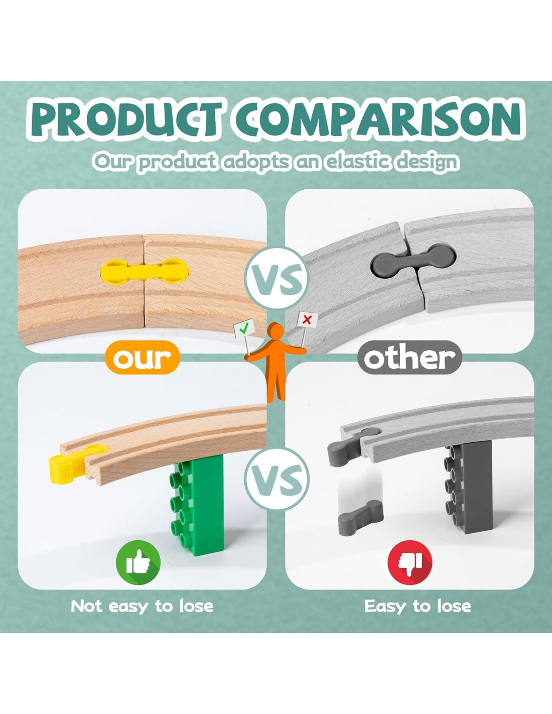 - Juego Seguro Certificado - nuestro conector de pista de madera está hecho de Acrilonitrilo Butadieno Estireno (ABS). Es seguro y no tóxico. Nuestras piezas de pista de tren de madera no contienen plomo, ftalatos ni bordes afilados, solo juego sin preocupaciones para niños pequeños y niños.