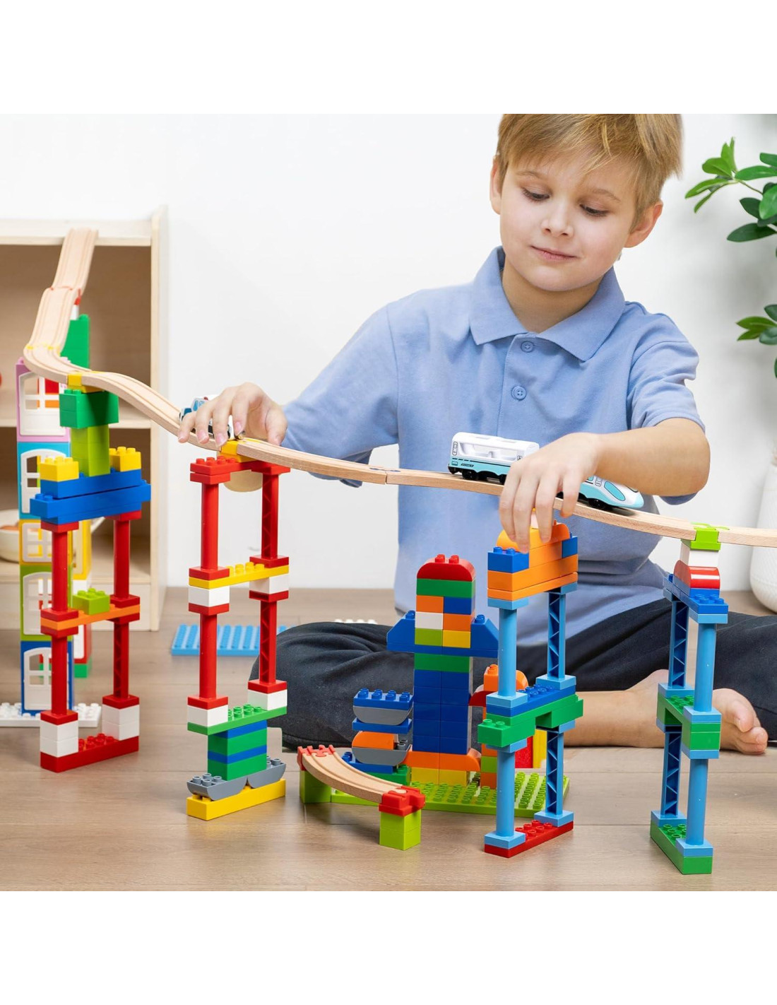 - Compatibilidad Universal con Bloques - Nuestros accesorios de pista de tren de madera se adaptan a todos los bloques de construcción estándar de 0.35" (0,89 cm) para crear pistas elevadas. Perfecto para combinar con juegos de tren de madera para diseños personalizados. Se enlazan suavemente con todas las marcas populares, perfecto para expandir el conjunto de ferrocarril de madera de su hijo.