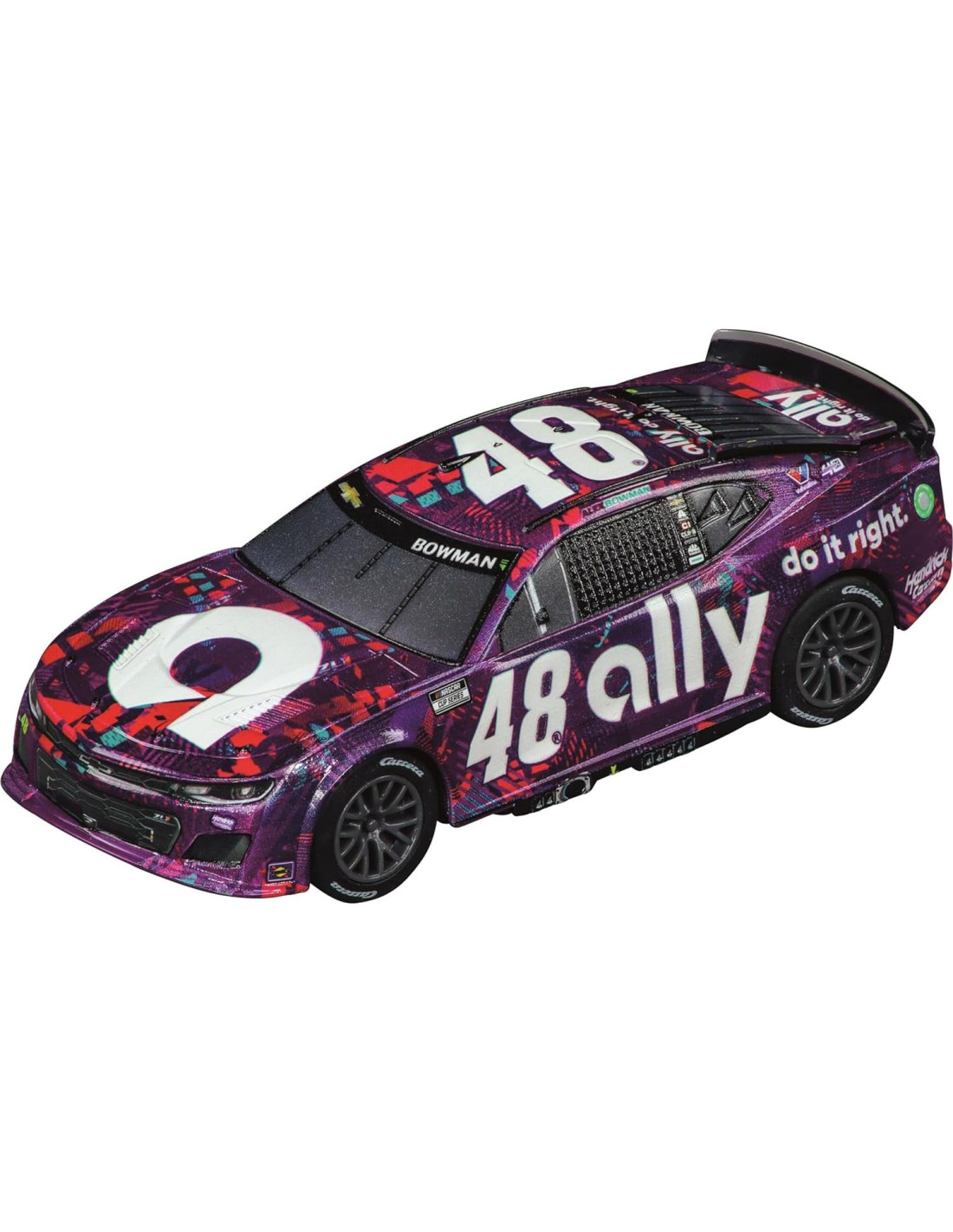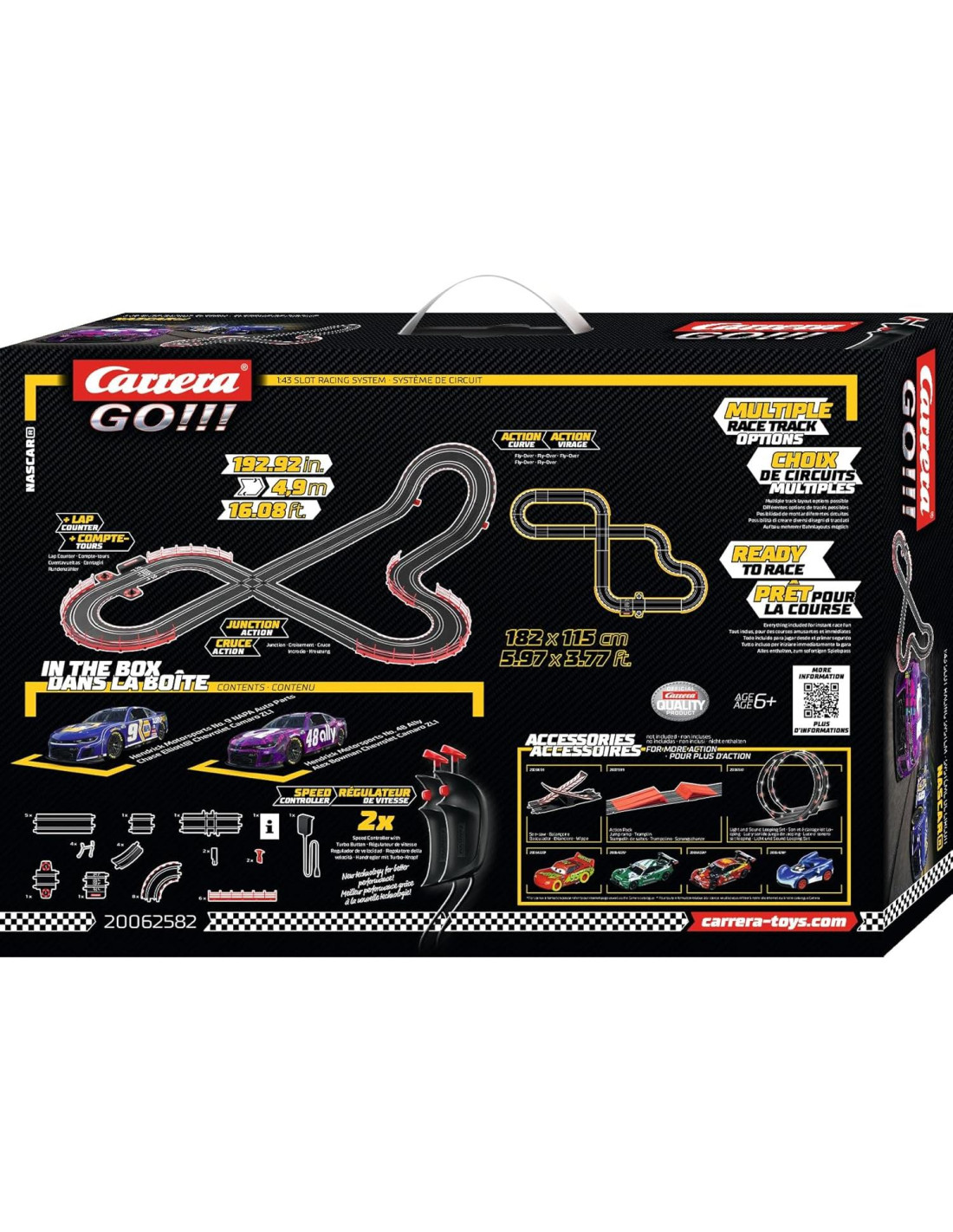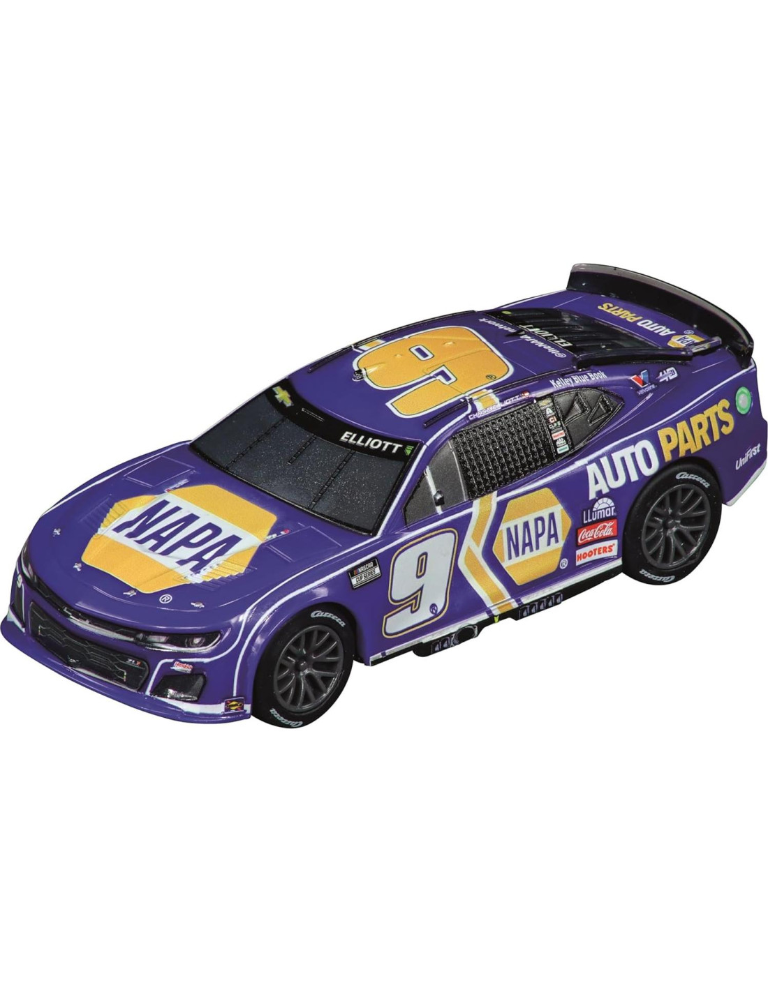 - Incluye 2 coches de slot oficialmente licenciados: NASCAR Camaro NextGen ZL1 'Hendrick Motorsports, Chase Elliot, No.9' y NASCAR Camaro NextGen ZL1 'Hendrick Motorsports, Alex Bowman, No.48'