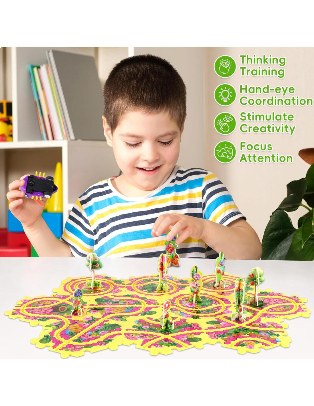 - Juego de Pista de Autos Rompecabezas: Nuestro juego de pista de autos rompecabezas para niños incluye 10 pistas de rompecabezas, 1 auto de juguete abeja, 8 señales de carretera de plantas y 1 destornillador, los niños pueden unir estos rompecabezas en una pista completa y el auto de juguete insecto puede viajar continuamente a lo largo de la pista
