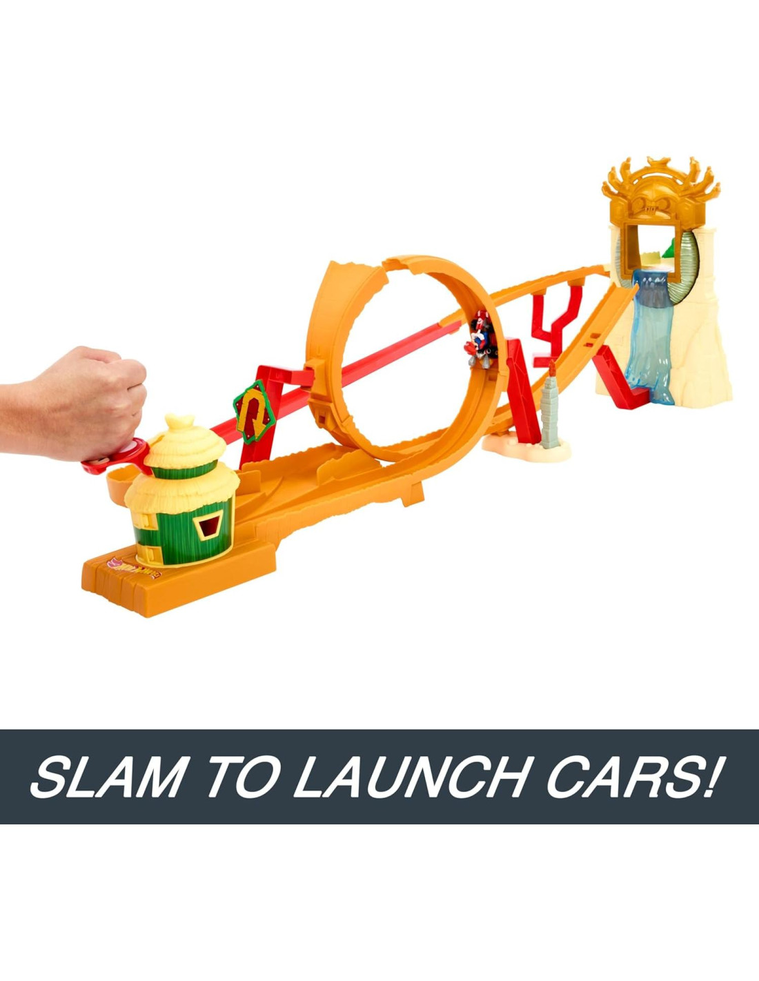 El set de juego y vehículo de Hot Wheels de la película Super Mario Bros. lleva la acción de la pantalla a la vida real. Inspirado en la película de Nintendo + Illumination, este set de pista presenta un emocionante recorrido para desafiar a los jugadores y brindar una descarga de adrenalina: hay un salto de cascada, un lazo roto y algunas curvas cerradas que navegar. Aquellos que logren completarlo pueden volver a intentarlo. Los niños solo deben presionar el lanzador para comenzar la acción. ¡Se incluye un auto de metal fundido a escala 1:64 para jugar directamente desde la caja! El set es un gran juguete para niños de 5 años en adelante que aman las carreras y acrobacias, especialmente los fanáticos de Super Mario. Los colores y decoraciones pueden variar.