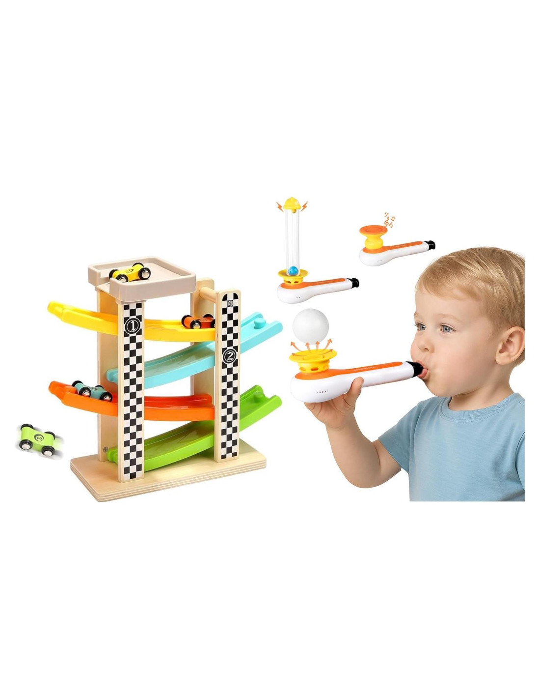 - Diversión Educativa para Niños y Niñas de 1-5 Años: Ambos juguetes están diseñados para atraer a niños de 1 a 5 años, proporcionando desafíos apropiados para la edad que fomentan el aprendizaje a través del juego. El juguete Montessori ayuda a desarrollar el control de la respiración, la capacidad pulmonar y las habilidades motoras finas, mientras que la pista de carreras fomenta el seguimiento visual, la destreza y la cooperación. Juntos, forman una combinación ideal para involucrar y educar a los niños, promoviendo el aprendizaje a través de la exploración, el movimiento y la interacción social