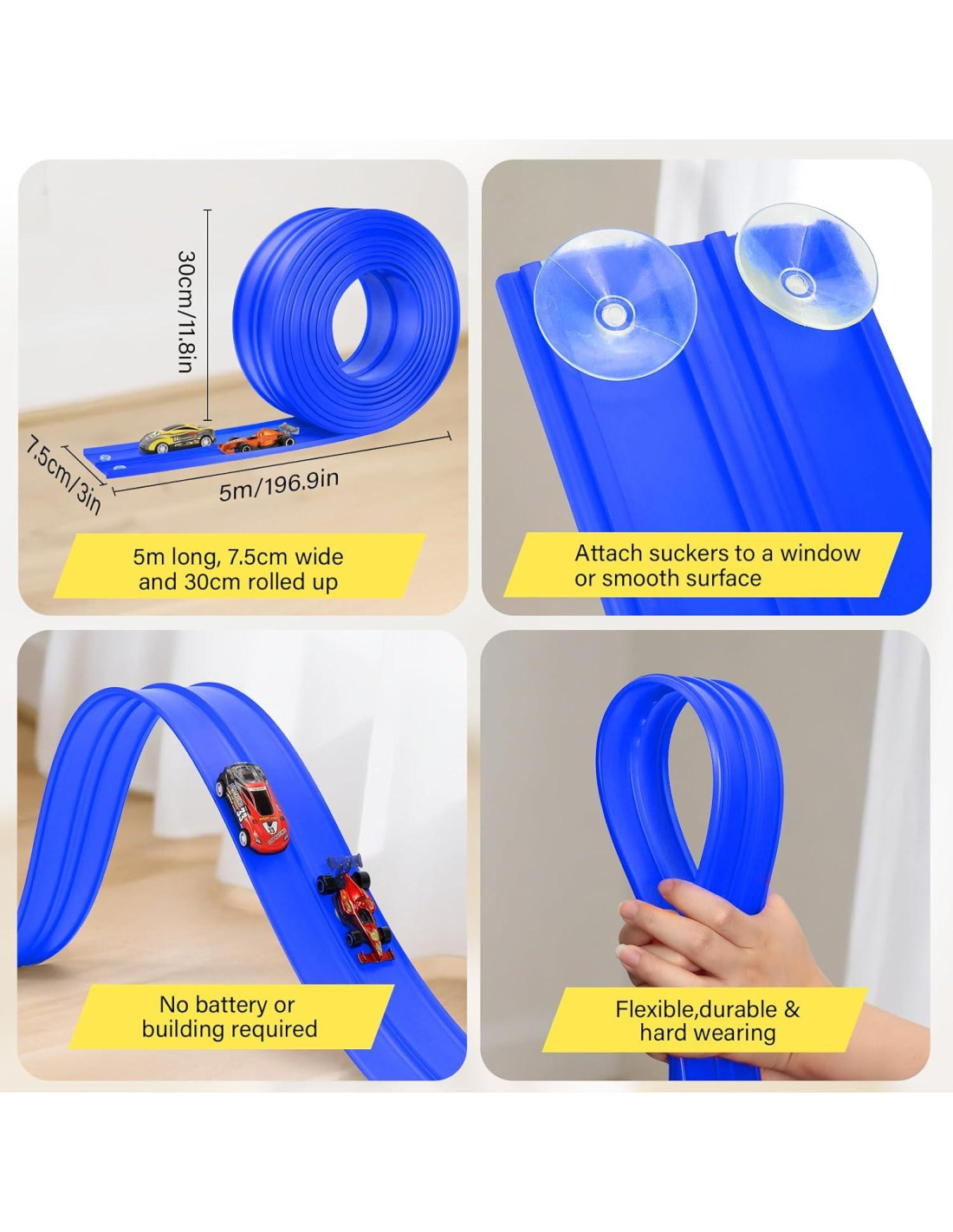 - Regalo para Pequeños Aventureros: 4.88m de longitud, versatilidad ilimitada inspira creatividad infinita; los jugadores pueden desatar su imaginación y establecer obstáculos audaces; almacenamiento compacto y potentes ventosas convierten cualquier superficie lisa en una pista atrevida, convirtiéndola en el tesoro definitivo para aquellos con sed de velocidad y un corazón lleno de aventura. Este juguete que fomenta la creatividad y estimula el cerebro es un gran regalo para mayores de 3 años.
