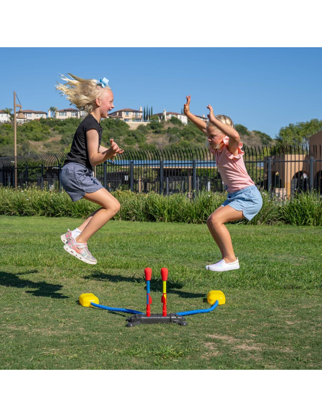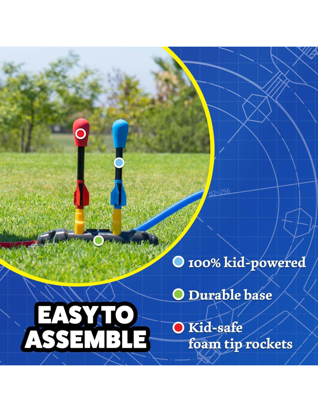 - FÁCIL DE ENSAMBLAR: Los Cohetes Dueling son 100% impulsados por niños - eso significa que no se requieren baterías y no hay cables o enchufes con los que lidiar. La Base es duradera, diseñada para los pisadores más activos, y los Cohetes están hechos de plástico resistente y punta de espuma segura para niños.