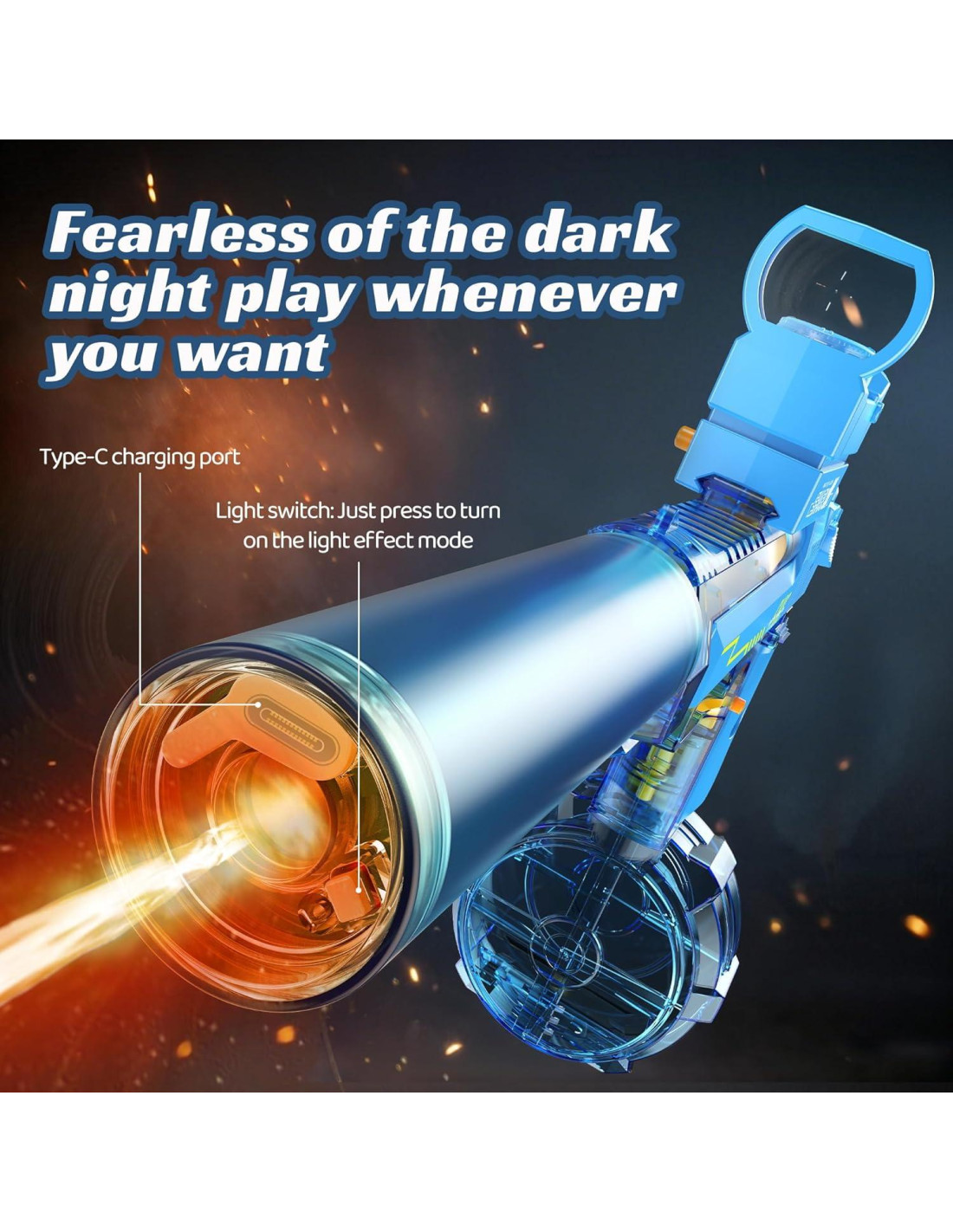 - Boquilla iluminada: Perfecta para diversión diurna o emoción nocturna (solo recuerda cargar esa boquilla brillante, o podrías terminar con un 'chorro' decepcionante). Imagina esto: estás en el calor de la batalla, y con cada tirón del gatillo, tus oponentes no solo se mojan, sino que también quedan asombrados mientras la boquilla dispara un resplandor similar a una llama.