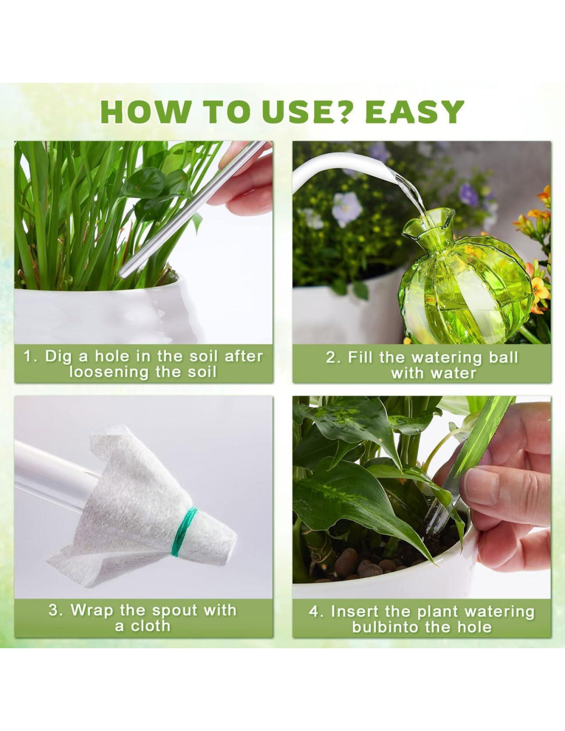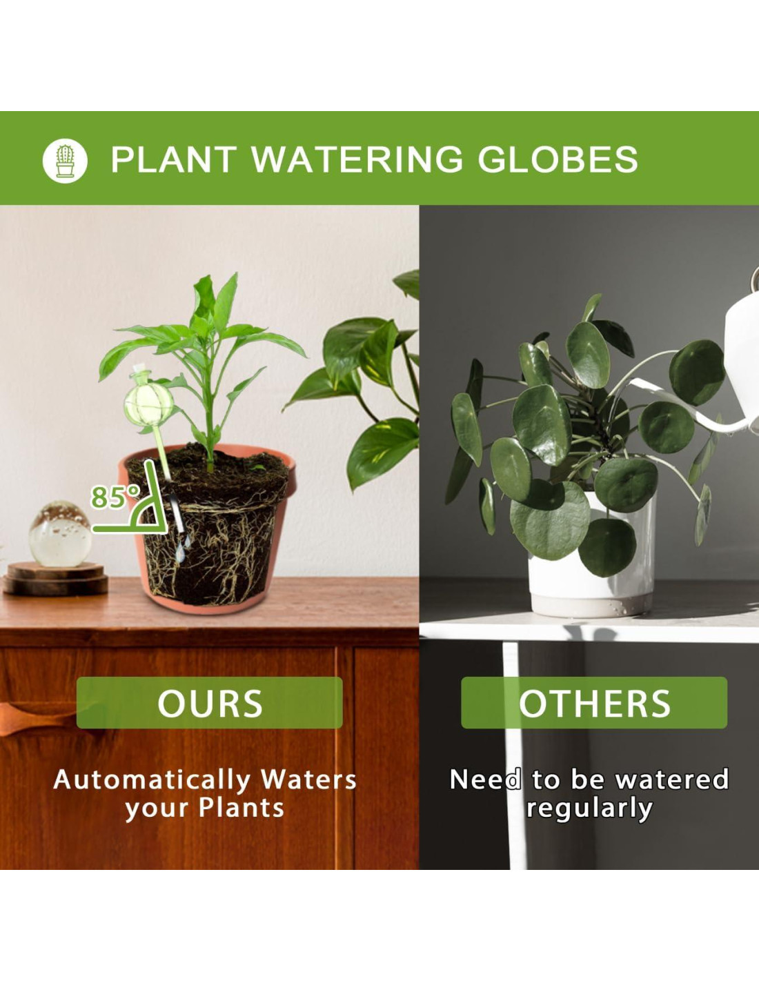 - Dispositivos de Riego Convenientes: Las Esferas de Autorriego para Plantas son dispositivos innovadores y convenientes que aseguran que tus plantas se mantengan hidratadas incluso cuando estás ausente o ocupado. Estas bombillas de riego de vidrio están diseñadas para liberar agua lentamente, manteniendo tus plantas y flores hidratadas durante un período prolongado.