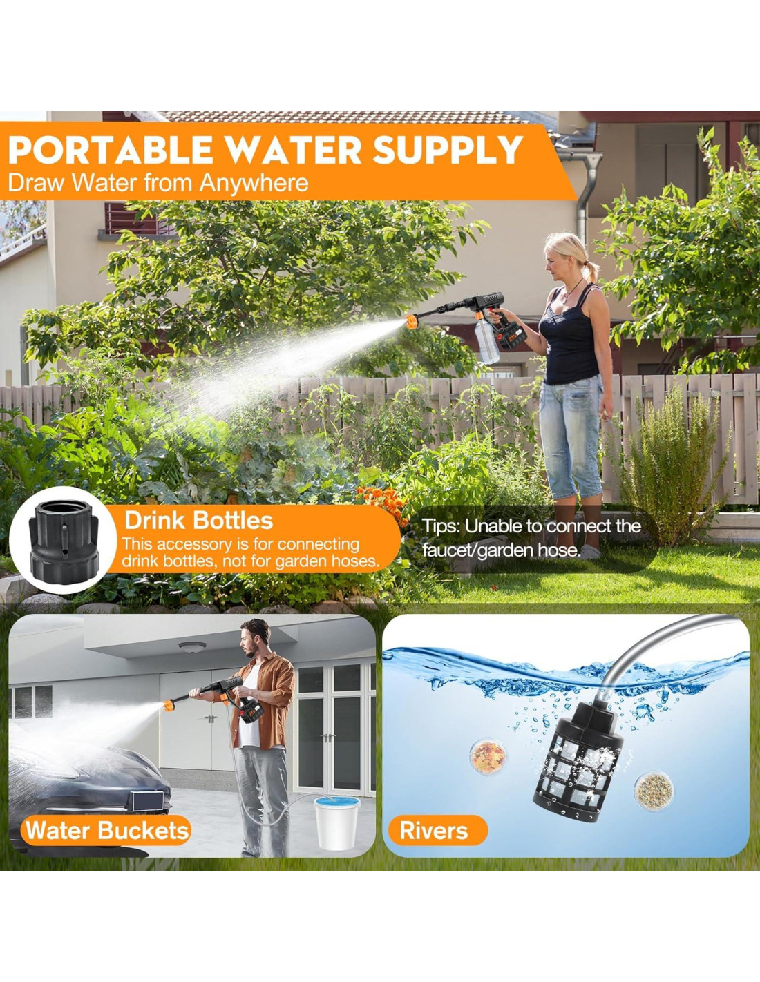 - Extraer Agua en Cualquier Lugar: La lavadora a presión de mano viene con una manguera de 5 metros y una canasta de filtro. Puede filtrar eficazmente impurezas y partículas en el agua, proporcionando mejor protección para la lavadora a presión de mano, para que no tenga que preocuparse por obstrucciones en la manguera. Al mismo tiempo, estamos equipados con conectores, incluso sin un grifo, puede extraer agua fácilmente de ríos, lagos o botellas de agua. Incluso en invierno o al aire libre, puede extraer agua fácilmente.