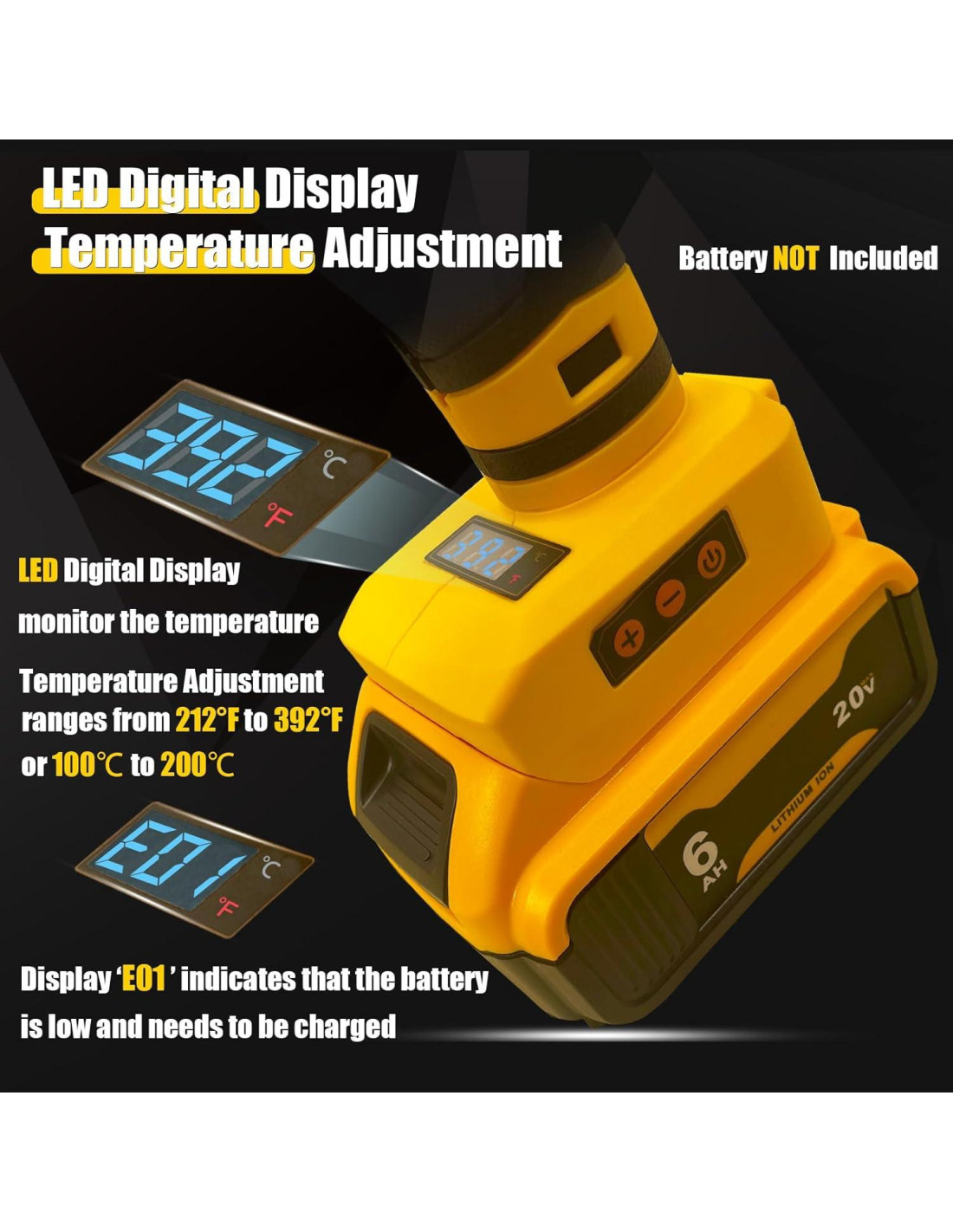 - Estilo: Grande, tamaño completo, inalámbrica, de alta temperatura para batería Dewalt