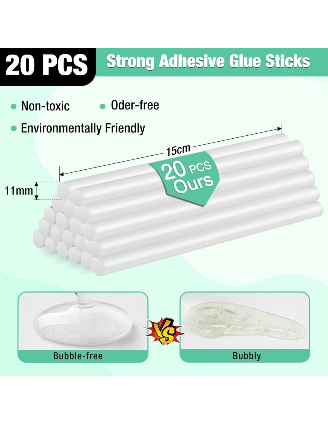 - 20 Piezas de Barras de Pegamento: Estas barras de pegamento caliente están hechas de material de alta calidad, libre de impurezas, asegurando alta transparencia, sin olor y fuerte adhesión. La pistola de pegamento inalámbrica proporciona una experiencia fluida para todos tus proyectos de bricolaje y manualidades