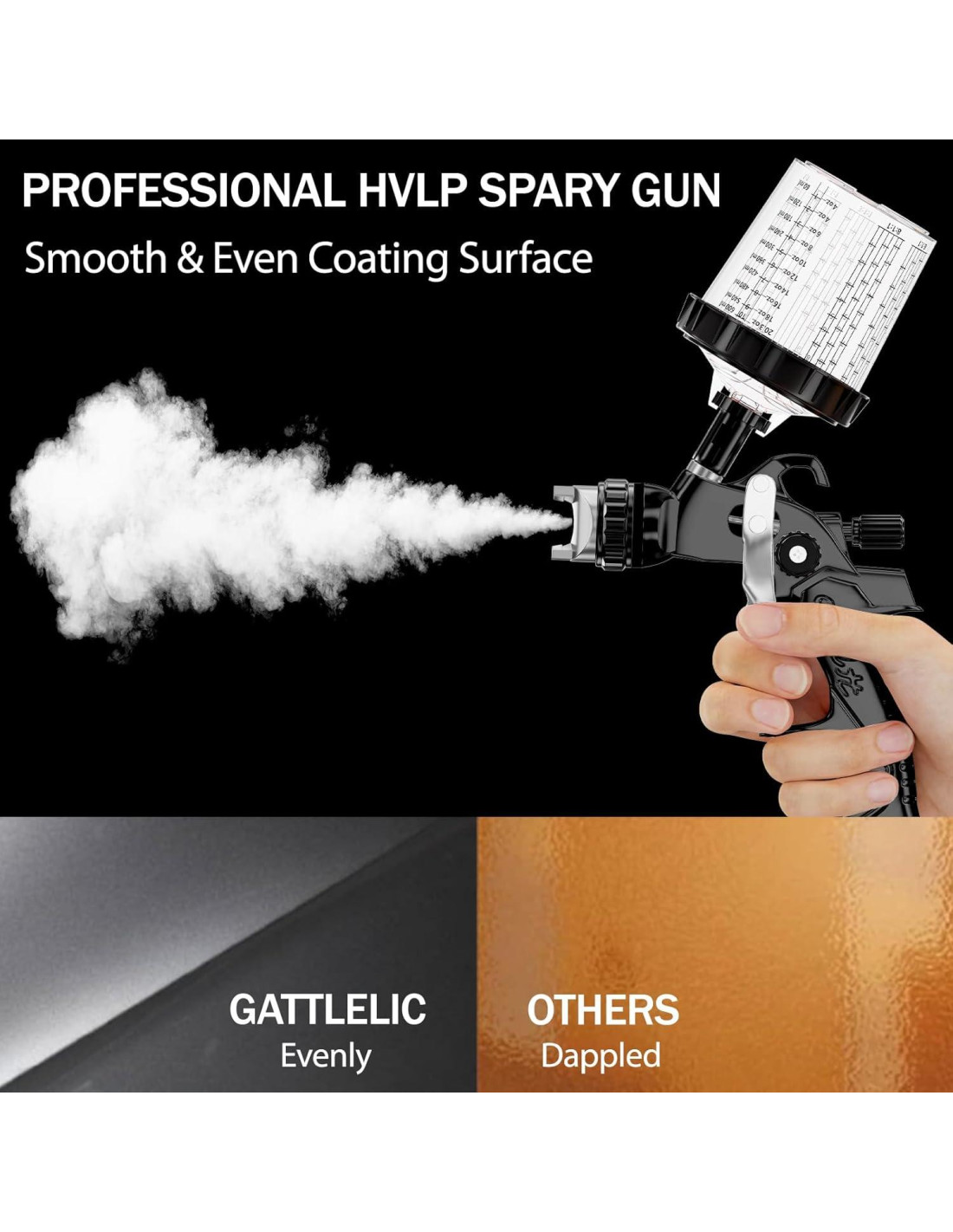 - [Amplia Gama de Aplicaciones] El mini pulverizador de pintura hace que la pulverización sea más suave, más fácil de controlar y reduce la pulverización excesiva. Adecuado para pulverizar imprimaciones, capas transparentes y otros recubrimientos de alta viscosidad, así como imprimaciones, capas finales y capas de detalle para la industria automotriz y muebles.