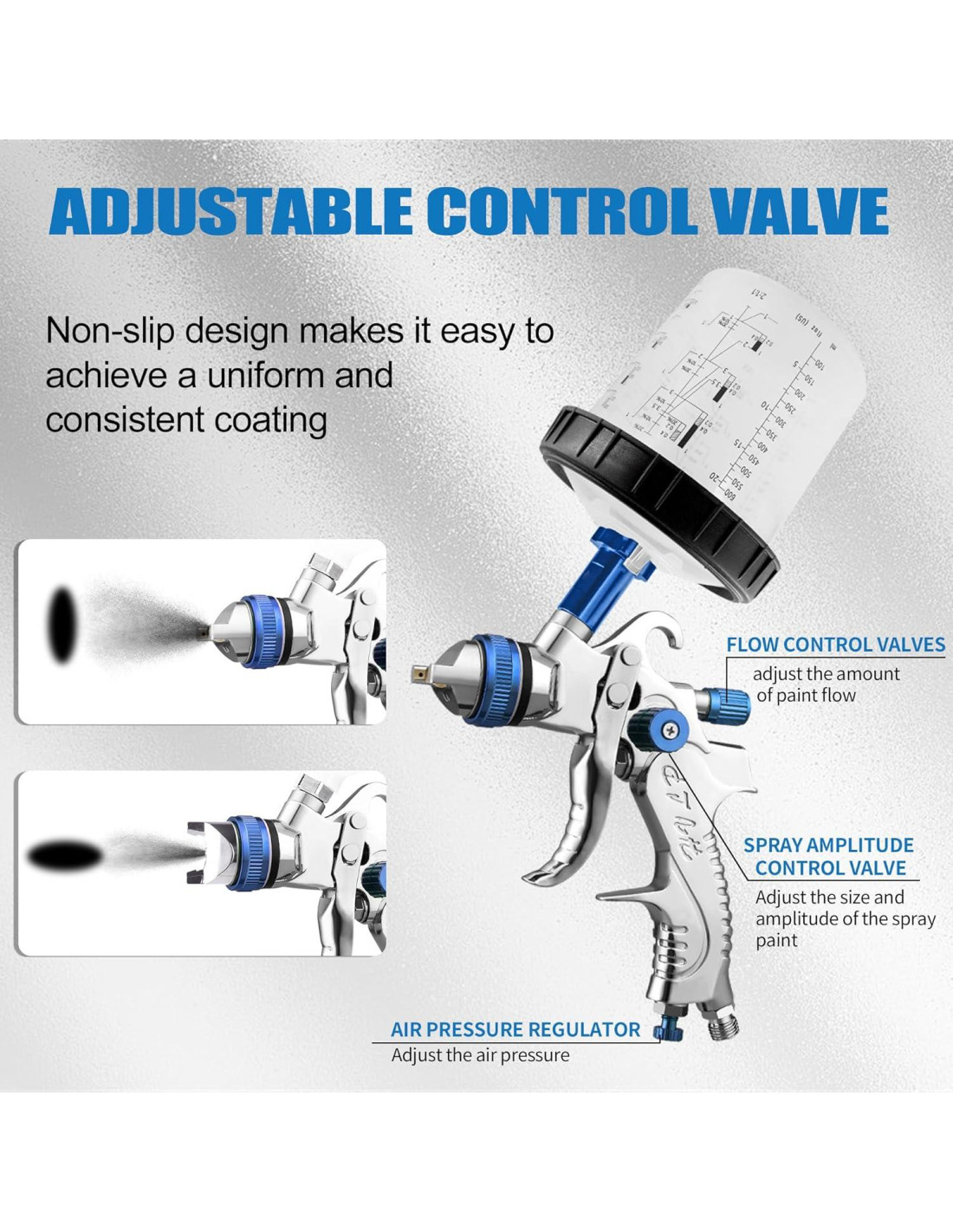 - DISFRUTA DE LA LIBERTAD DE PINTAR CON SPRAY: Esta pistola de pintura automotriz puede cambiar las cuatro boquillas a voluntad, que se puede utilizar para acabados automotrices, pintura de paredes, rociado de graffiti, reparación de techos en el hogar, pintura industrial, y ser un diseñador de pintura en spray profesional y libre.