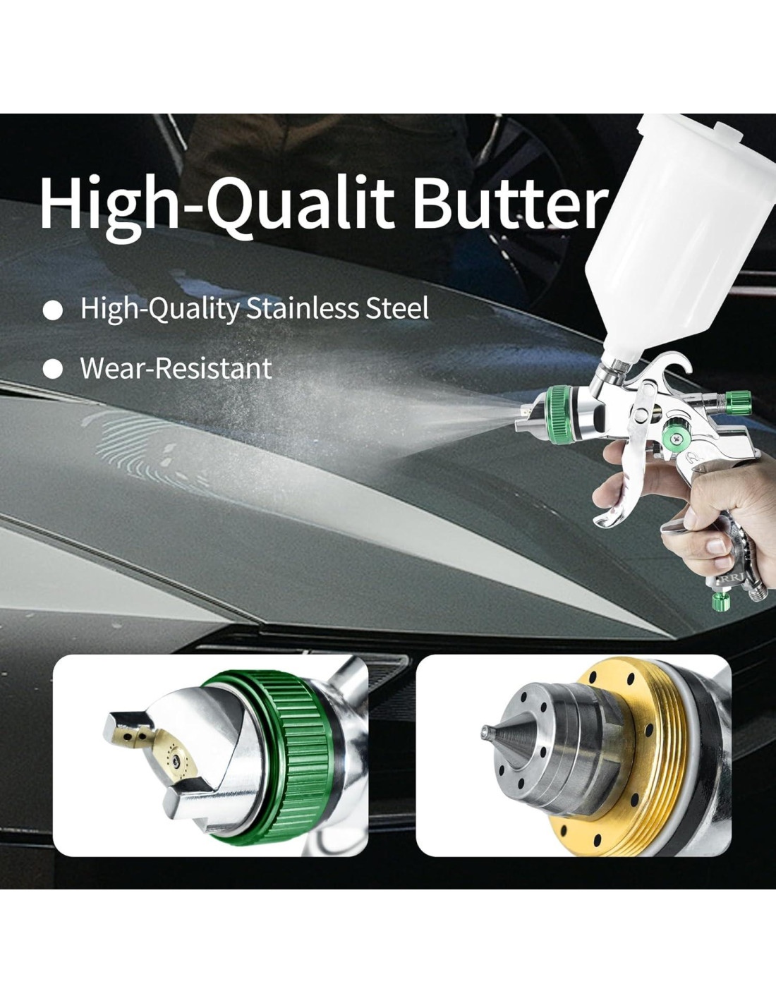 Esta pistola de pulverización neumática hvlp para automóviles funciona bien, utilizando hasta el 65% de la pintura, mientras que el producto en sí está hecho de aleación de aluminio para otro nivel de calidad y durabilidad. La pistola se ensambla con diagramas paso a paso, así que por favor entiende y lee las instrucciones que vienen con el producto antes de usarlo para asegurar que el proceso sea fluido. Este botón controla la cantidad de pintura. Este botón controla el ancho de pulverización. Para los productos de pistola de pulverización BENTOHKLE, el alcance de aplicación y su amplia gama, pueden estar involucrados en una variedad de escenarios, puedes hacer que se convierta en una pistola de pintura para automóviles, pistola de pulverización para renovación de casas, pistola de pulverización para graffiti en paredes, pistola de renovación de pintura de muebles, etc., ¡como desees diseñar!