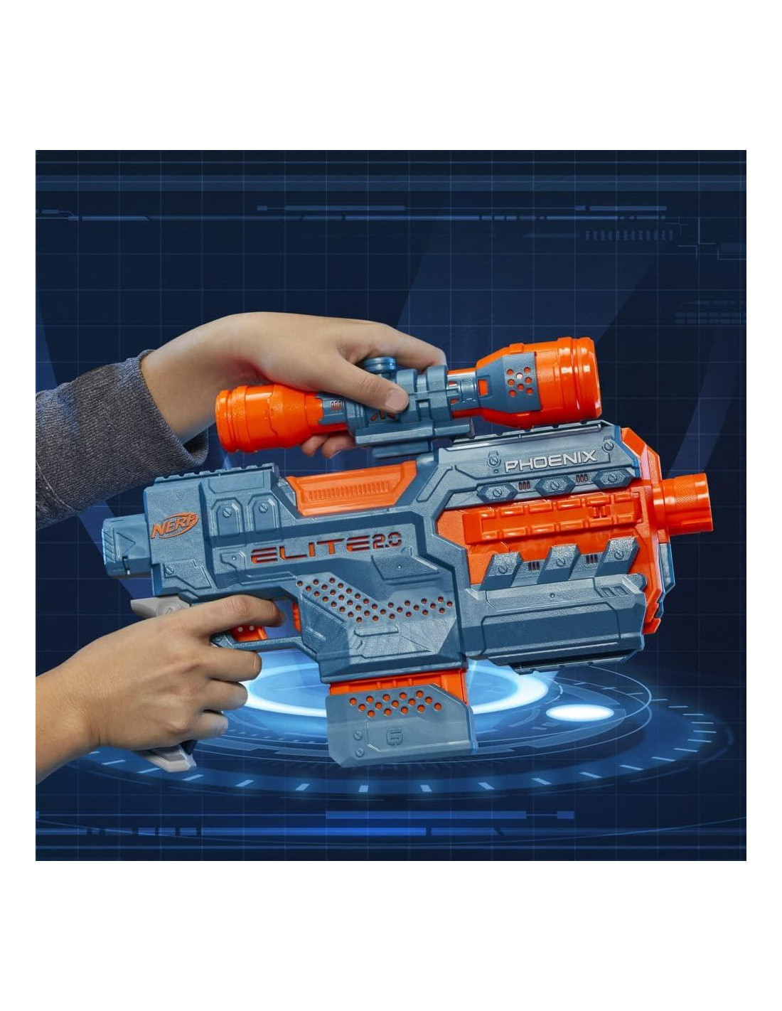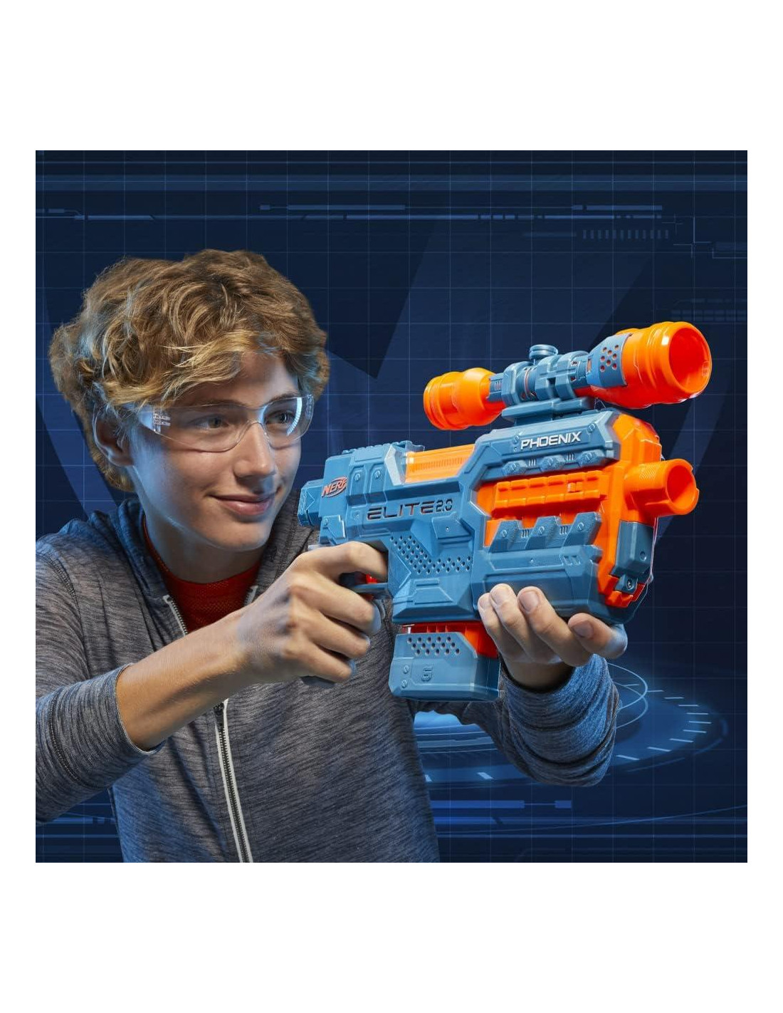 Prepárate para la batalla con los blasters Nerf Elite 2.0 que cuentan con capacidades de personalización integradas para que puedas mejorarlos y aprovechar la ventaja en las competiciones Nerf. Construye tu reserva de blasters Nerf Elite 2.0 para optimizar tu estrategia de juego y aportar rendimiento táctico y flexibilidad a cada misión y batalla. El blaster motorizado Nerf Elite 2.0 Phoenix CS-6 tiene 5 rieles tácticos, un punto de sujeción para culata y un punto de sujeción para cañón, para que puedas personalizarlo para cada misión o batalla. Dispara 6 dardos en fila desde el cargador de 6 dardos incluido. Mantén presionado el botón de aceleración para activar el motor, luego presiona el gatillo para disparar 1 dardo a la vez. Incluye una mira removible. Incluye 12 dardos Nerf oficiales: 6 dardos para llenar el cargador y 6 dardos para potencia de fuego de respaldo. Dispara dardos hasta 90 pies (27 metros). Se recomienda el uso de gafas. Culata, extensión de cañón y gafas no incluidas. Se requieren baterías (no incluidas). Nerf y todas las propiedades relacionadas son marcas registradas de Hasbro.