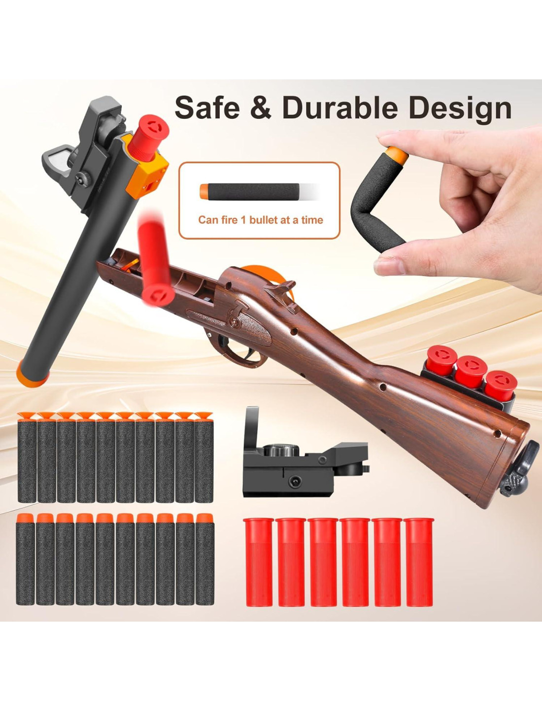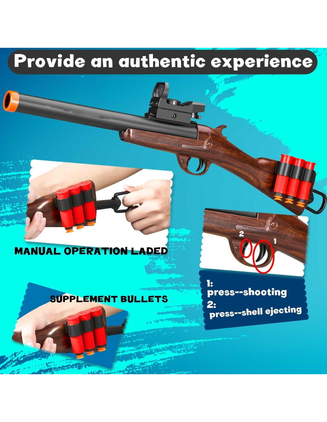 - [Diseño de salto de balas suaves] : ¡Después de cada disparo, tire hacia atrás y el casquillo de la bala saldrá volando! Simula el disparo de combate real, ¡dándote una sensación inmersiva!