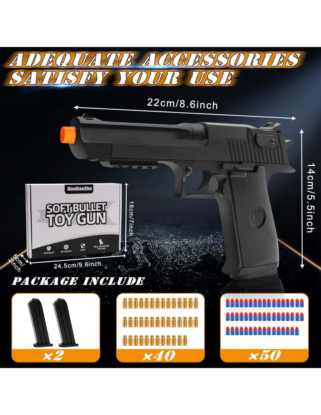 - [Paquete completo para diversión continua] Este paquete de pistola de juguete fidget incluye todo lo que necesitas: 1 x pistola de juguete, 2 x clips de balas, 50 x balas suaves y 40 x casquillos. Es un gran regalo para niños, adultos en cumpleaños, Navidad, Halloween y más.