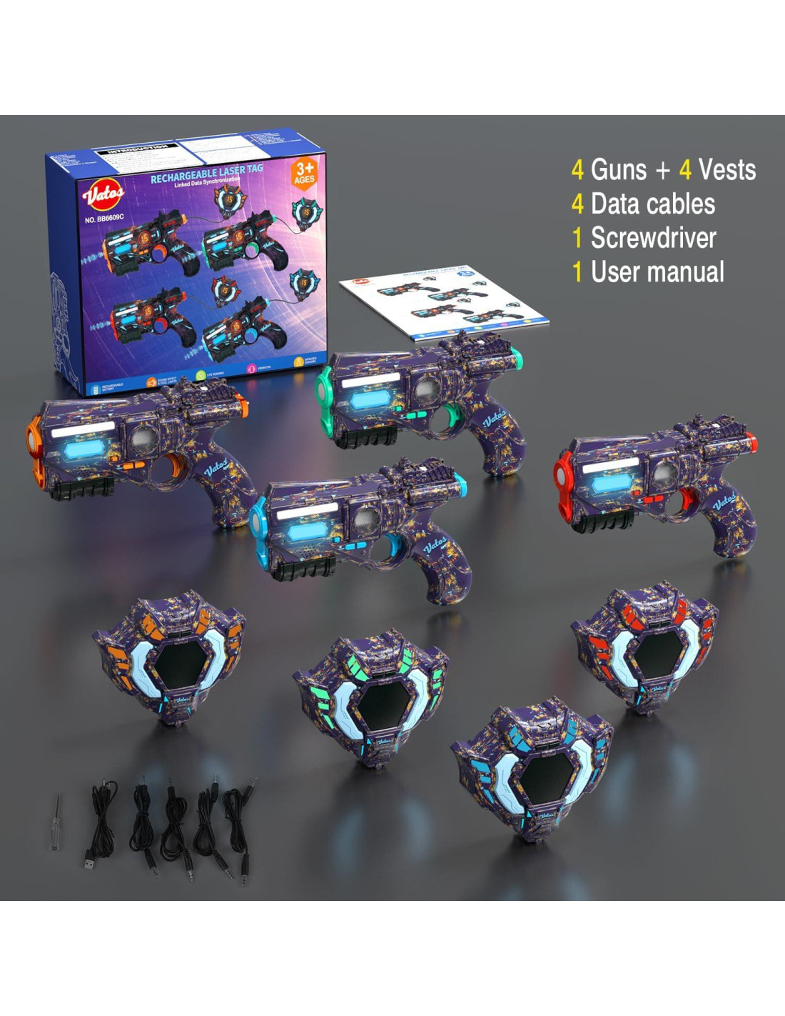 - BATERÍAS RECARGABLES MEJORADAS: En comparación con la versión anterior del conjunto de pistolas de juguete que necesitaba ser desmontada para cargar, esta versión mejorada del conjunto de 4 pistolas de juguete tiene baterías integradas, equipadas con 8 baterías recargables y 2 cargadores USB de 1 tráiler 4, lo que te ahorra tiempo y evita que pierdas tus baterías. Con solo 3-4 horas de carga, puedes jugar con esta increíble pistola de juguete durante hasta 4 horas