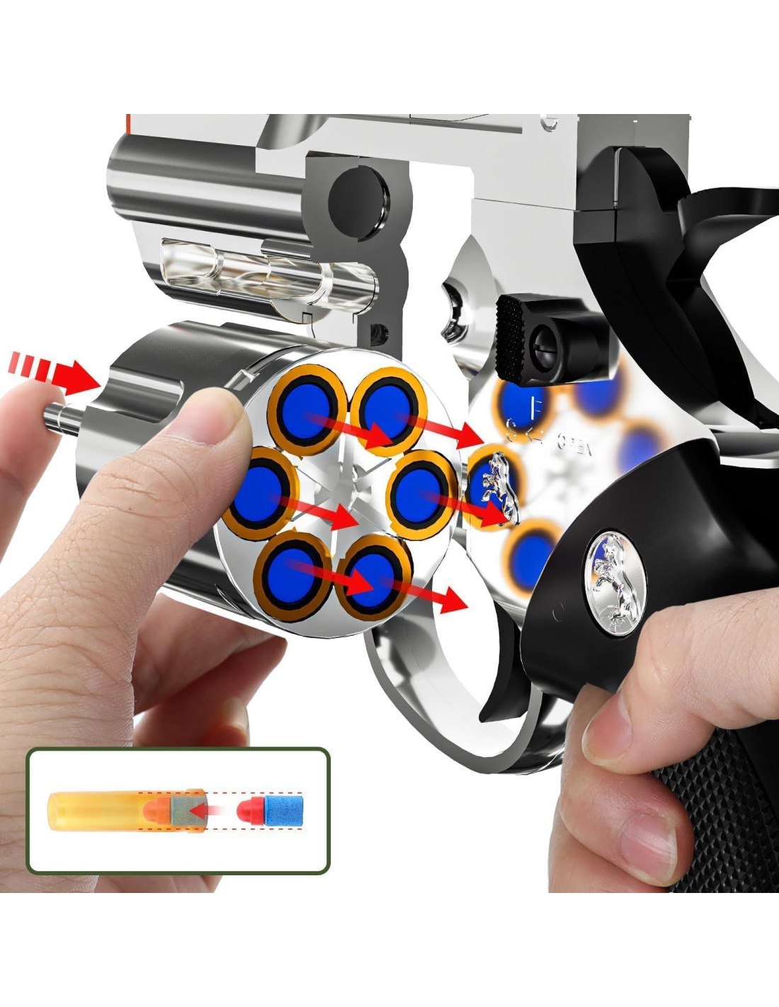 - Revolver de Juguete de Balas Blandas Seguras: Revolver de juguete con balas blandas de EVA. Las pistolas de juguete manuales son de uso universal repetido por niños y adultos