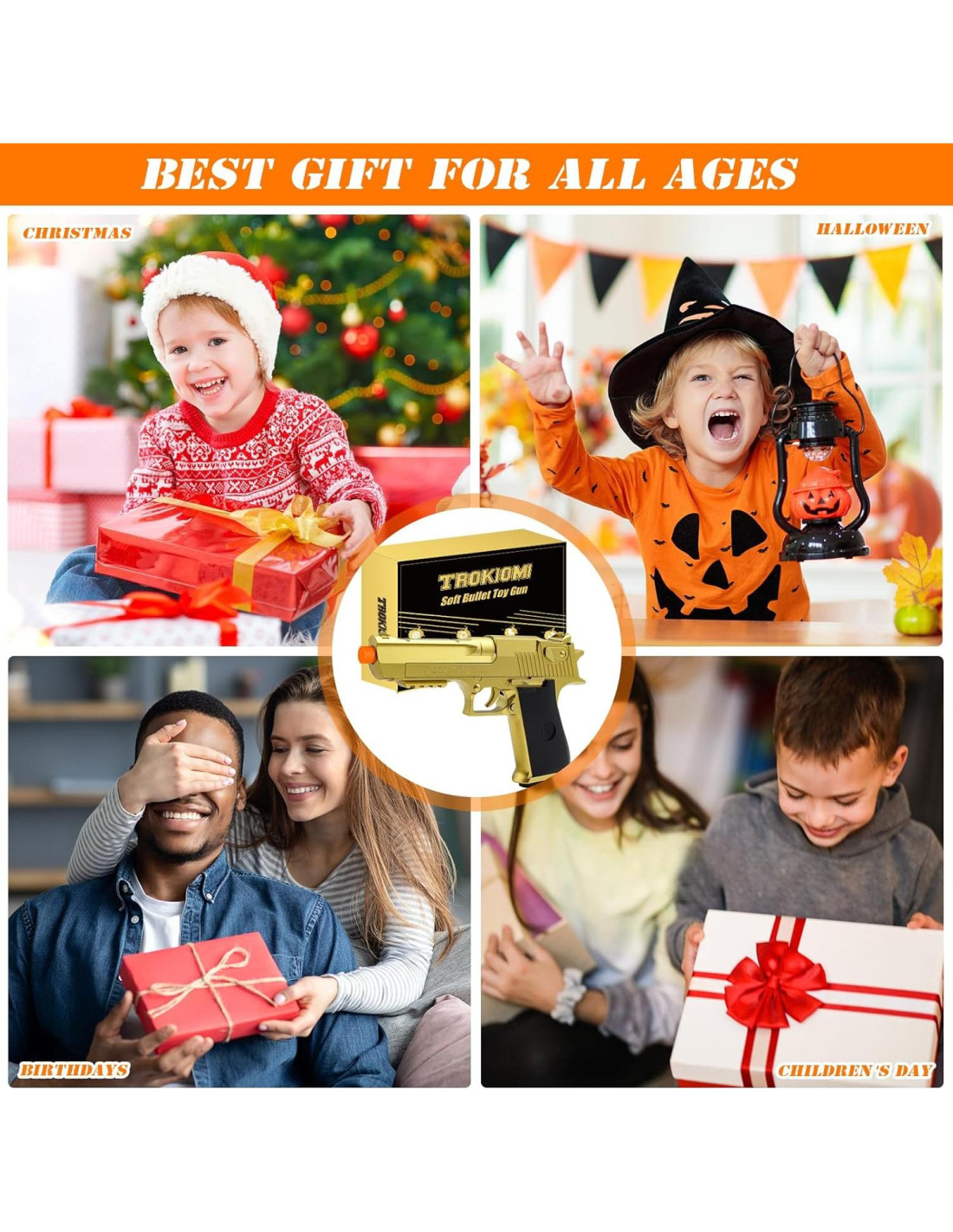 - Disparo Preciso con Alcance de 394 Pulgadas: Diseñada por Trokiomi, la pistola de juguete dorada es ideal para mejorar las habilidades de puntería y disfrutar de juegos a larga distancia.