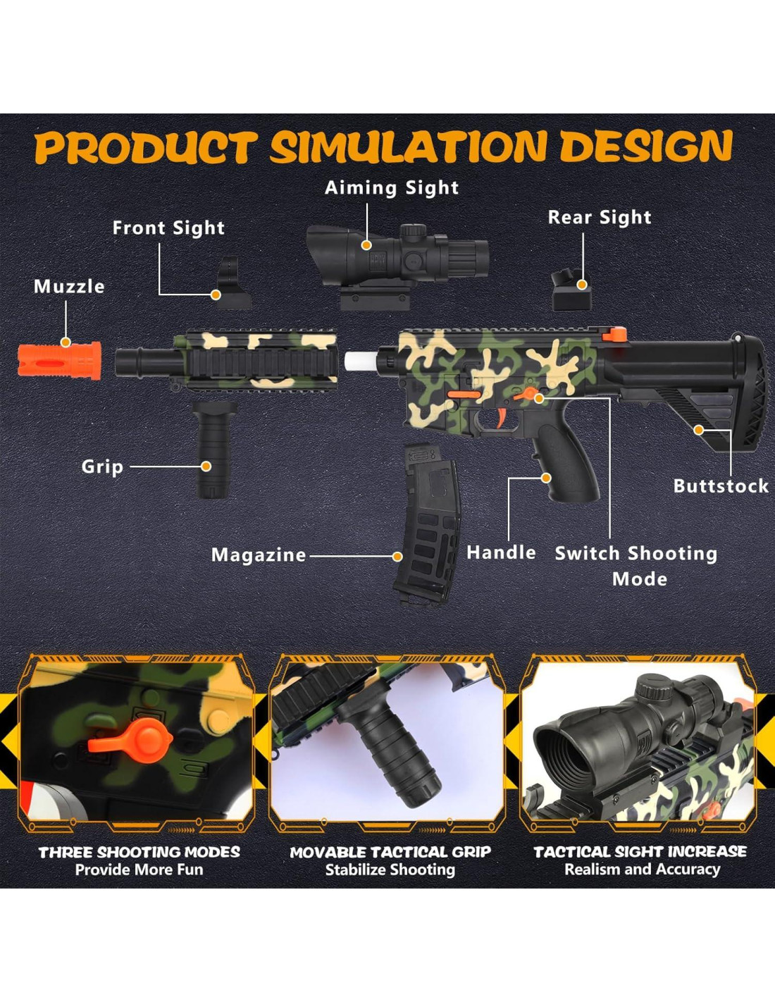 - [Diseño de Simulación Realista] Nuestro rifle de juguete eléctrico realista está diseñado de acuerdo con el modelo M416. Te proporcionamos mira, empuñaduras removibles y el cuerpo de la pistola está diseñado para ser lo más realista posible. Hecho de material ABS de alta calidad, equipado con 60 dardos de espuma, este rifle francotirador automático tiene la calidad y los accesorios para satisfacer tus requisitos.