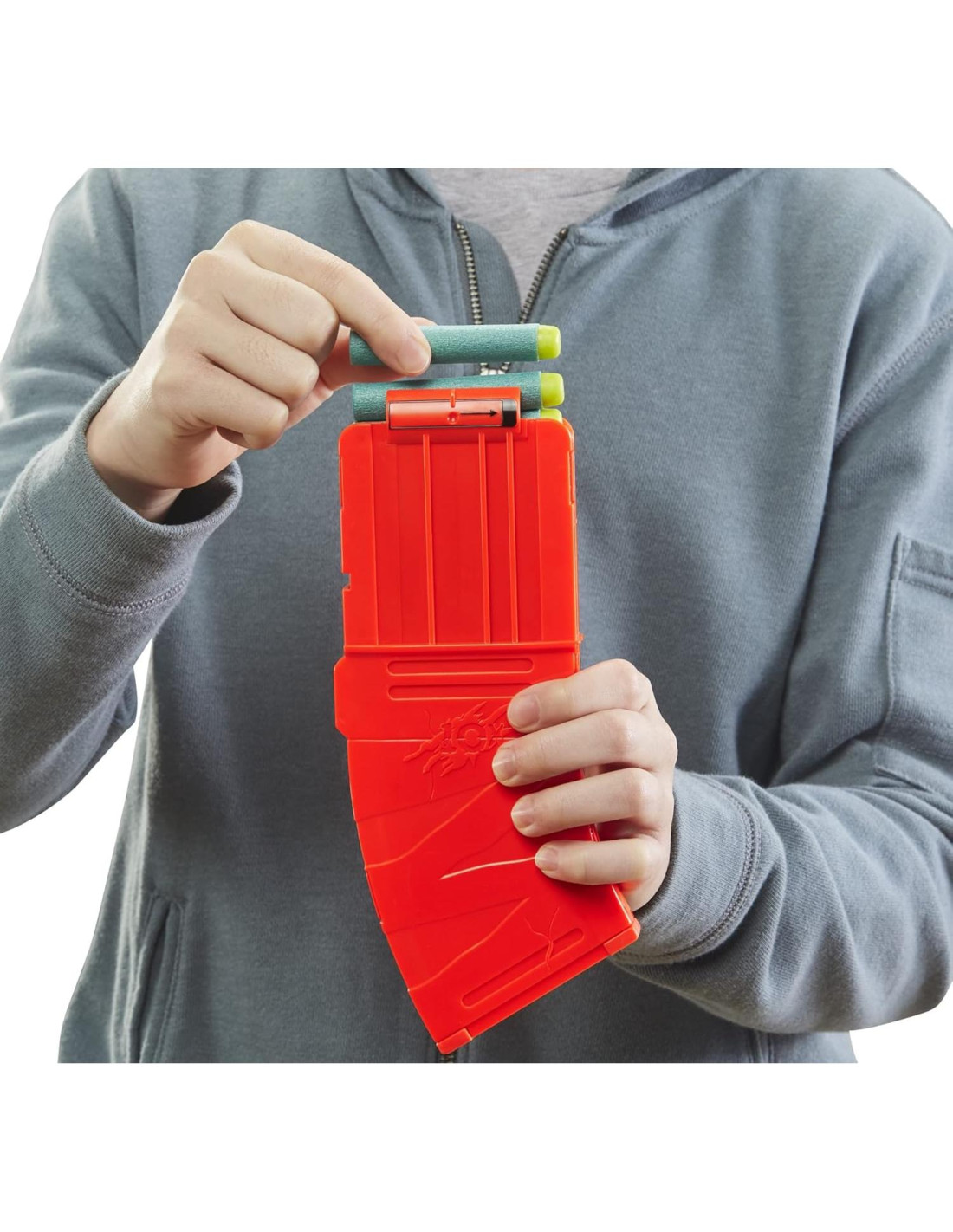 - CLIP DE 10 DARDOS Y MIRA DE PUNTUACIÓN: Dispara 10 dardos en fila desde este lanzador que viene con un clip de 10 dardos removible: el lanzador incluye una mira de puntería no removible para alinear tus disparos.