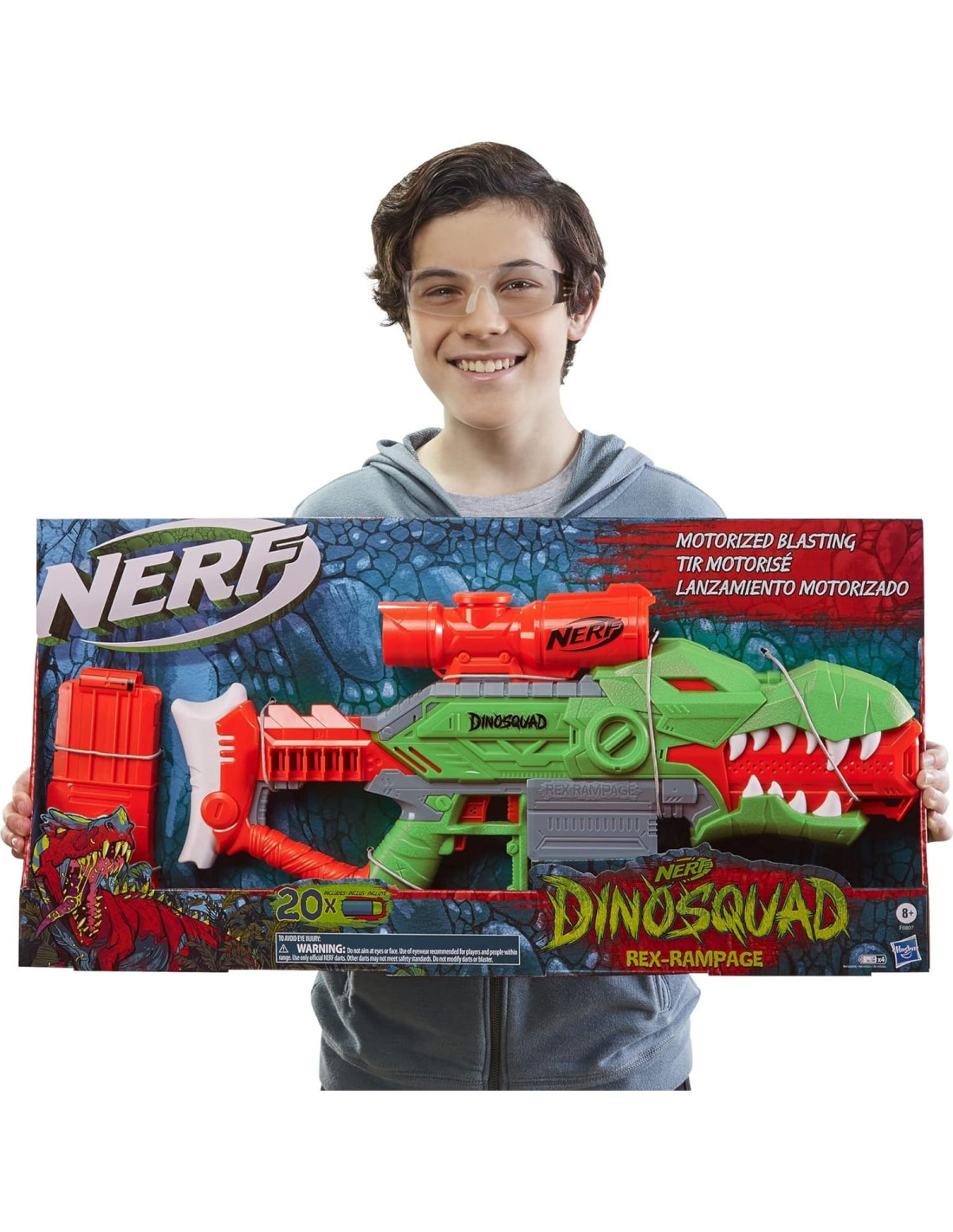 - LANZADOR NERF DINOSQUAD REX-RAMPAGE: ¡Lucha con el poder de un T-rex con este lanzador que presenta increíbles detalles de dinosaurio, capturando la apariencia de un dinosaurio Tyrannosaurus Rex!