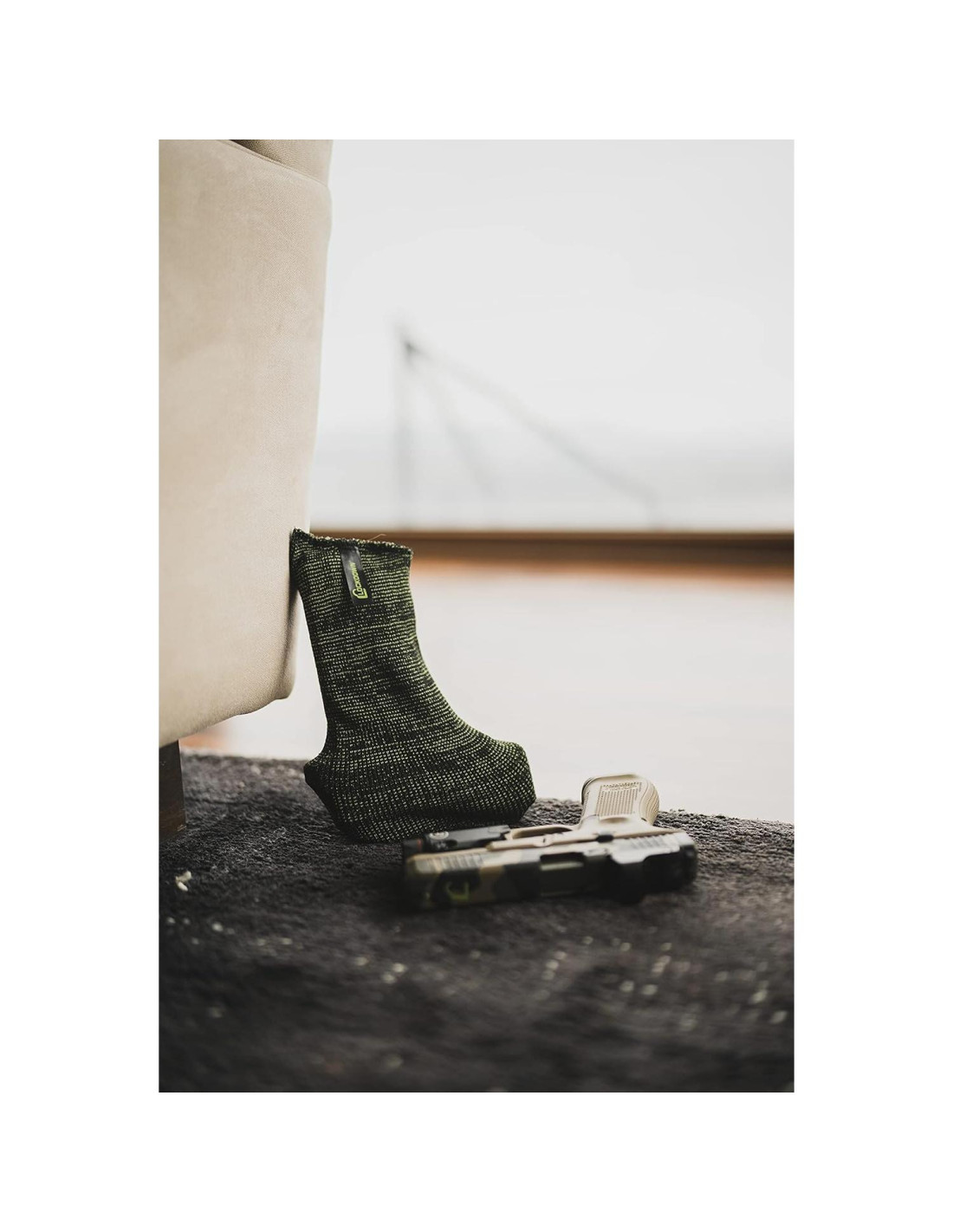 - FACILIDAD DE USO: El calcetín se deslizará fácilmente sobre el arma de fuego, adaptándose a la forma del arma, y la parte superior ajustable con cordón proporciona un cierre seguro para una protección total