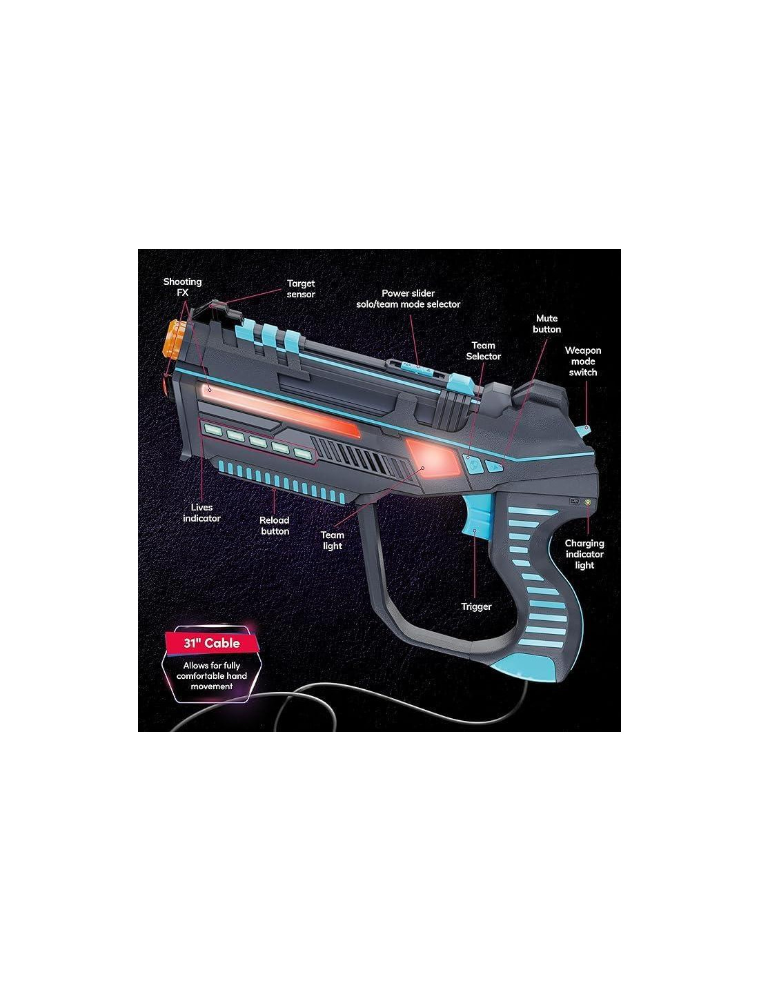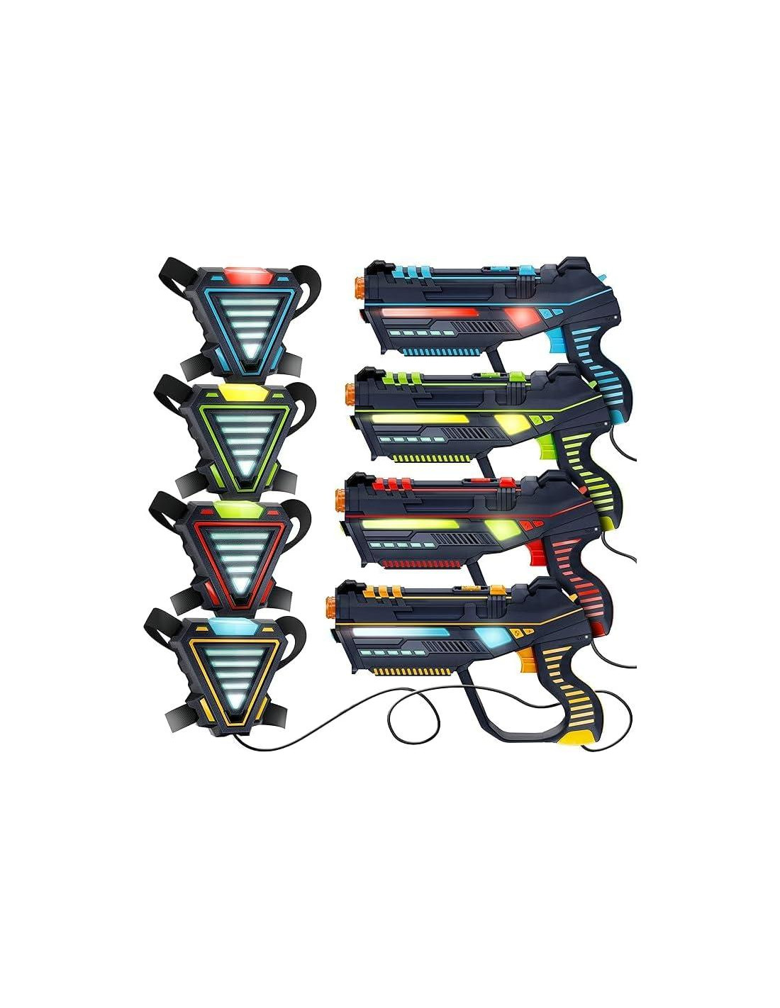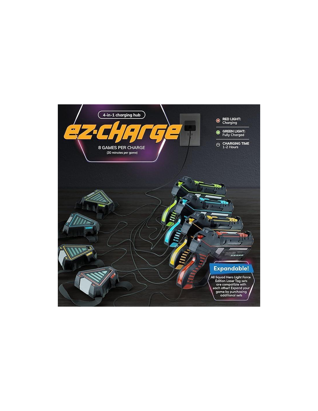 - Edición Light Force de Laser Tag: Ofrece horas de diversión llena de acción y adrenalina donde sea que establezcas el campo de batalla. Con una configuración rápida y equipo recargable de larga duración, estarás listo para jugar y disparar en poco tiempo. Solo elige tus equipos (¡o ve solo!), ponte tu equipo y prepárate para la batalla. Corre, escóndete, rueda, apunta y elimina a tus enemigos para ganar el juego. Incluye: 4 pistolas y chalecos, cable de carga 4 en 1.