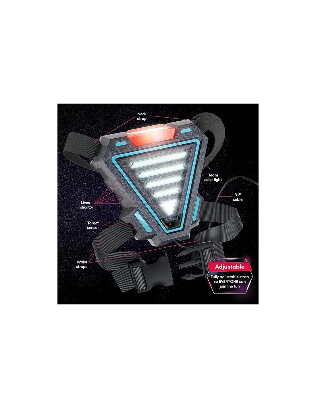 - Especificaciones Premium: Totalmente Sincronizado - Las pistolas y chalecos están conectados para asegurar una experiencia sin interrupciones. Las vidas y los datos del equipo se sincronizan automáticamente. Objetivos de Múltiples Zonas: Dos zonas de objetivo (pecho y pistola) no le dan a tu oponente ninguna escapatoria. Tecnología Segura: Utiliza emisión infrarroja segura para niños y no rayos láser.