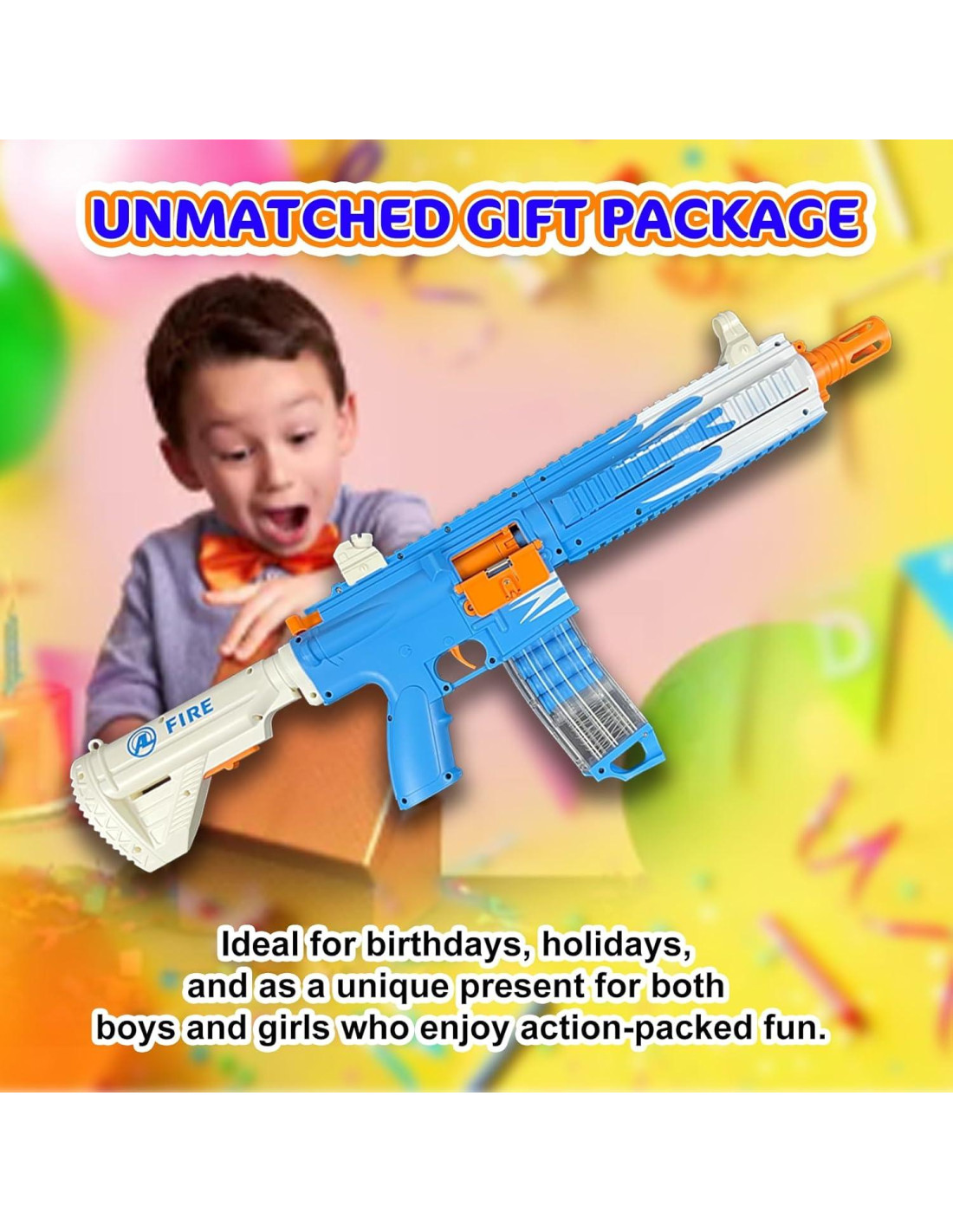 - [Blaster de espuma eléctrica semiautomático] : Esta pistola de juguete eléctrica utiliza un motor de alta velocidad, por lo que las balas suaves disparadas pueden alcanzar 15.24 metros. Los niños y adolescentes pueden disparar al objetivo correctamente a distancia tanto en juegos interiores como exteriores