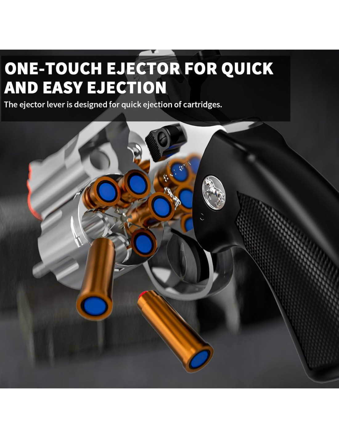 - [El paquete contiene] 1 revólver de juguete, 12 cartuchos, 40 balas blandas, 1 funda y gafas