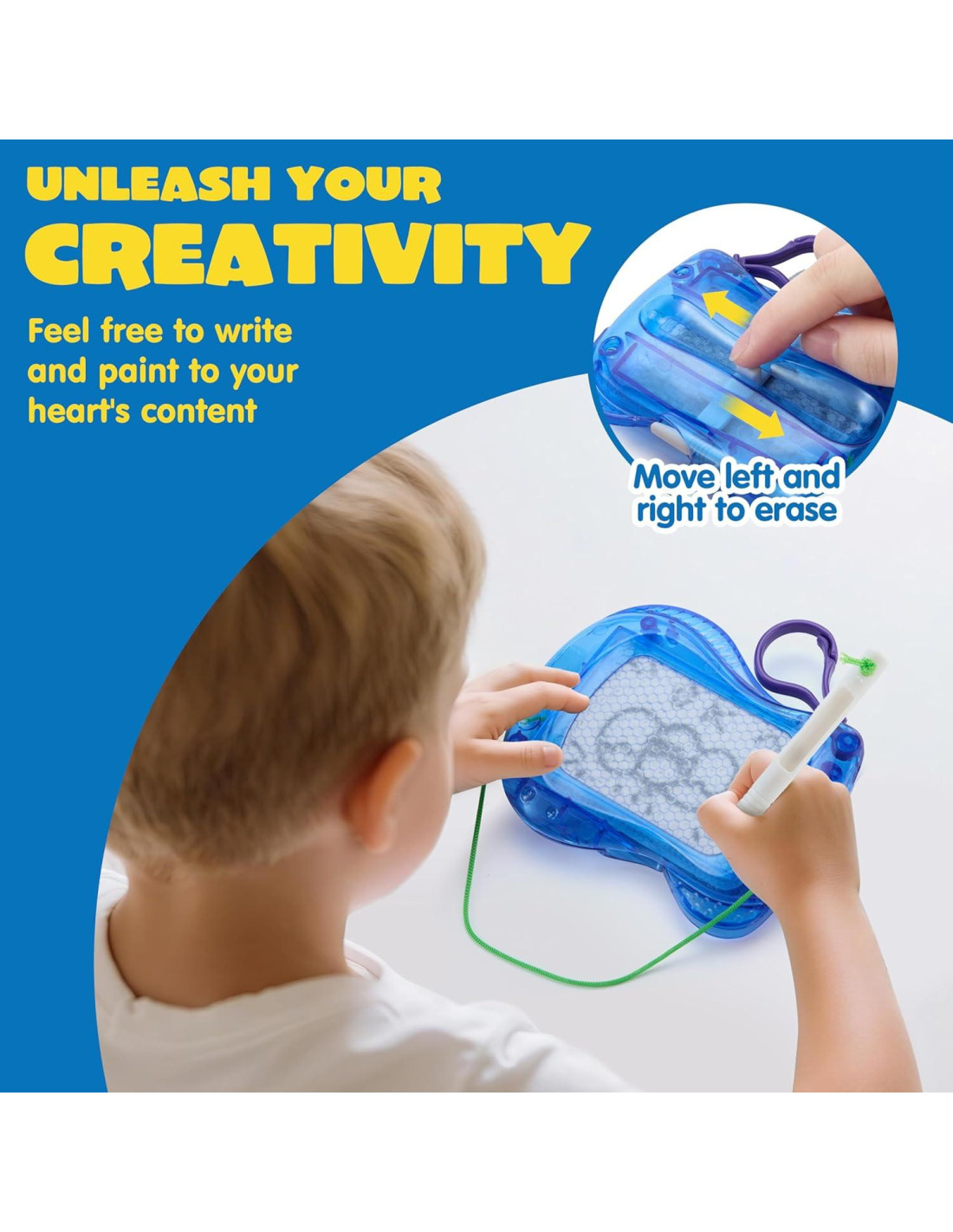 - Llavero y Borrable: Con un simple bolígrafo magnético, los niños pueden dibujar, escribir o garabatear en la pizarra magnética y borrar sus creaciones con solo un deslizamiento. Esto lo hace ideal para uso repetido: ¡dibuja una y otra vez sin desorden!