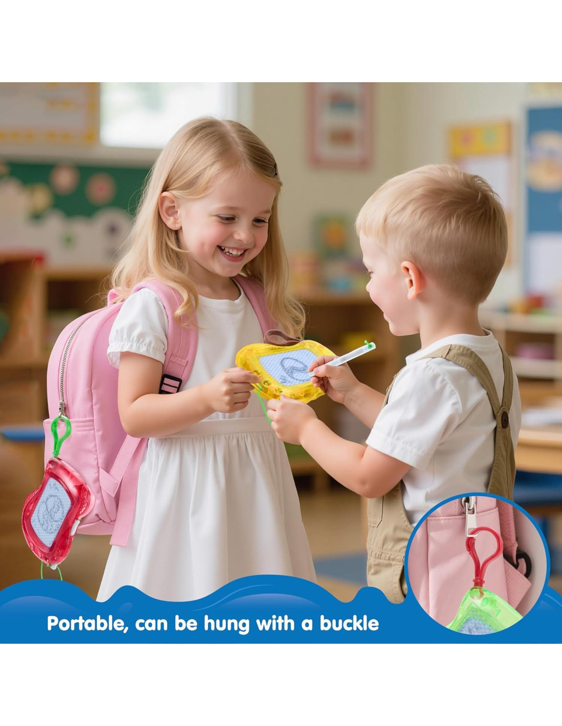 Paquete Mini Magnético Colorido y de Gran Valor: Este conjunto incluye 12 Mini Tableros de Dibujo Magnéticos con 6 colores brillantes que incluyen azul, púrpura, rosa, amarillo, rojo, verde. Perfecto para juegos en grupo, aulas, o como parte de una colección de sorpresas para bolsas de cumpleaños y ocasiones especiales. Llavero y Borrable: Con un simple bolígrafo magnético, los niños pueden dibujar, escribir o garabatear en la pizarra magnética y borrar sus creaciones con solo un deslizamiento. Esto lo hace ideal para uso repetido: ¡dibuja una y otra vez sin desorden! Regalo Perfecto y Favor de Fiesta: ¿Buscas los regalos perfectos para fiestas para niños? Este mini magnético mide 10.16 cm (4 pulgadas) de largo, perfecto para manos pequeñas. Son premios fantásticos para niños y adiciones divertidas a las sorpresas de las bolsas. También son perfectos para fiestas de cumpleaños y eventos escolares. Calidad Premium: Fabricado con materiales duraderos y de alta calidad. Cumple con los estándares magnéticos de EE. UU. para juguetes, estos tableros están hechos para durar y son seguros para niños de todas las edades. Educativo y Divertido: Estos juguetes de caja de tesoros para aulas ayudan a promover la creatividad, habilidades motoras finas y pensamiento independiente. A los niños les encantará usar la pizarra magnética para crear imágenes divertidas y practicar la escritura mientras desarrollan habilidades importantes.