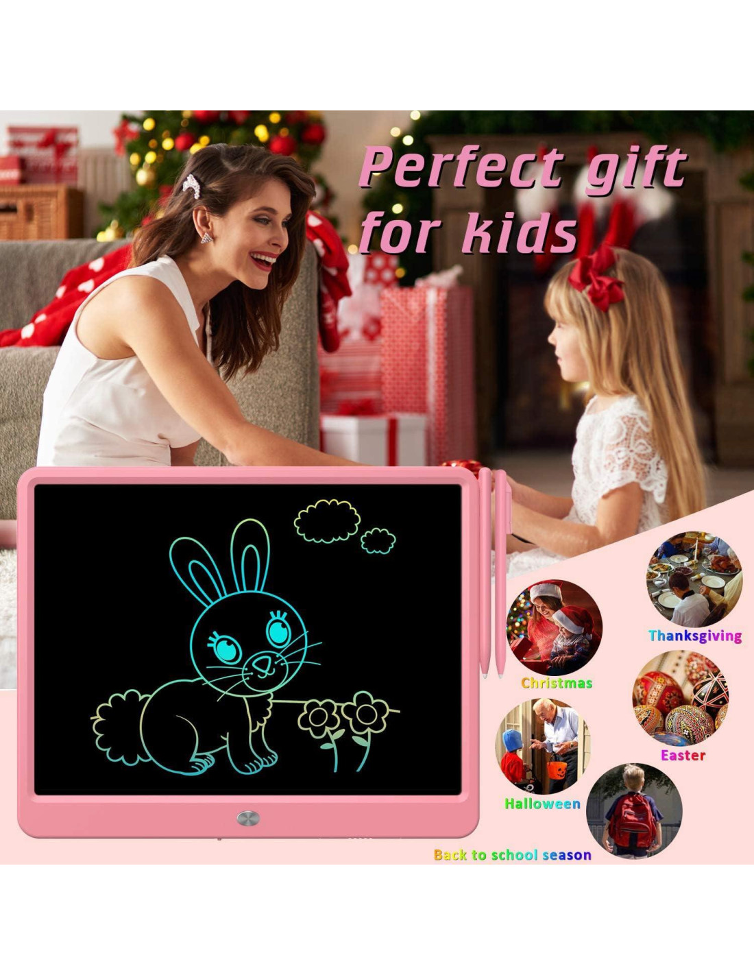 - [Actualizada Tableta de Dibujo LCD Colorida de 15 Pulgadas para Niños]: Dibujo claro y vívido, escritura suave. La pantalla LCD sensible a la presión superior, segura y cómoda incluso para un uso prolongado, ofrece suficiente espacio para garabatos y fácil visualización, libera la imaginación del niño, proporciona una mejor experiencia de aprendizaje preescolar. Sorpresa: ¡Tenemos dos bolígrafos, uno extra en comparación con otros productos, lo que te permite interactuar con los juegos de tus hijos sin miedo a perderlos!