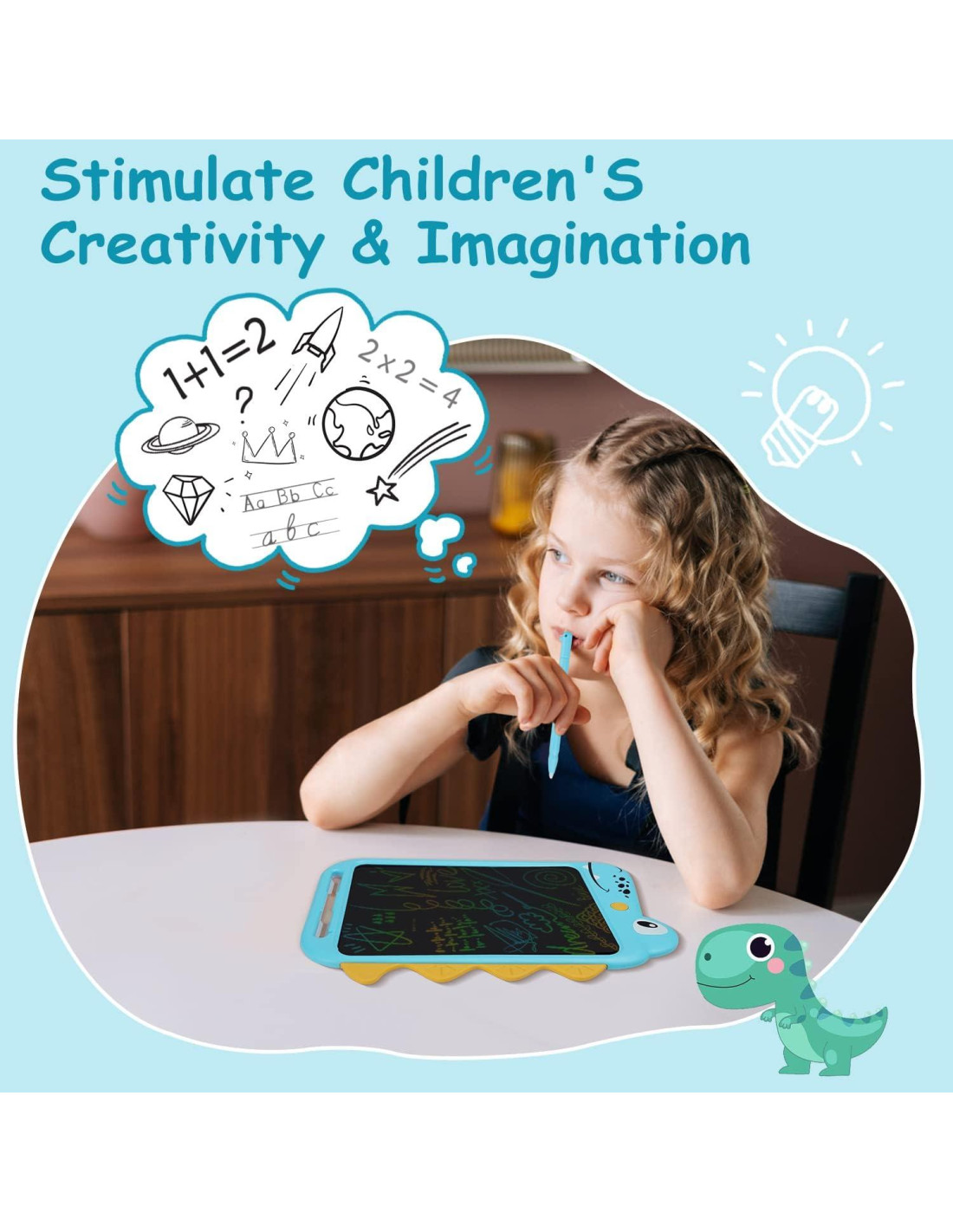 - Desata la Creatividad y Concentración de tu Niño - La tableta de escritura de dinosaurio es más que un juguete - es un cautivador tablero de garabatos que inspira a los niños de 3 a 8 años a expresar su creatividad e imaginación sin límites. Con cada trazo del stylus, tu hijo puede desarrollar la habilidad esencial de concentración, que les beneficiará en todas las áreas de sus vidas.
