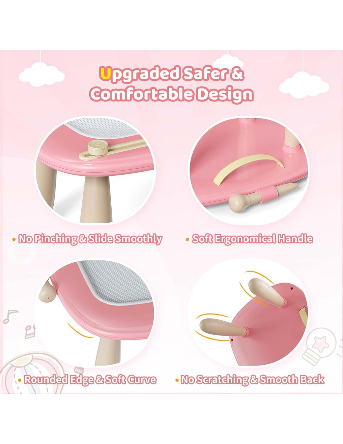 - Mesa de Dibujo Resistente o Pizarra de Dibujo: Diseñada con un sistema de tornillo duradero y patas premium, esta pizarra está construida para soportar un uso intensivo sin un indicio de inestabilidad o riesgo de rotura. Además, las patas de la mesa son fácilmente desmontables y ajustables en tres alturas diferentes, ofreciendo el ajuste perfecto para la comodidad de tu pequeño artista. Deja que su creatividad fluya con un montaje estable y flexible que crece con ellos, ideal para horas interminables de diversión dibujando.