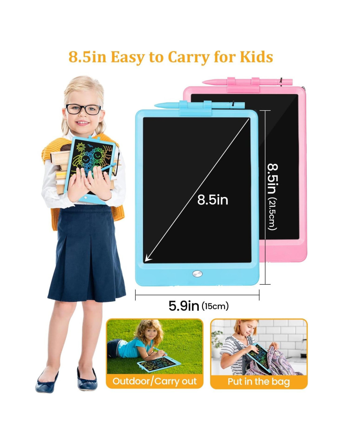 - Pad de Escritura LCD de Alta Calidad: Nuestra tableta de dibujo de 8.5 pulgadas 2pack cuenta con una pantalla LCD flexible de cuarta generación que asegura alta resolución y durabilidad. Este tablero de garabatos amigable para niños es libre de radiación, sin deslumbramiento y seguro para un uso prolongado.