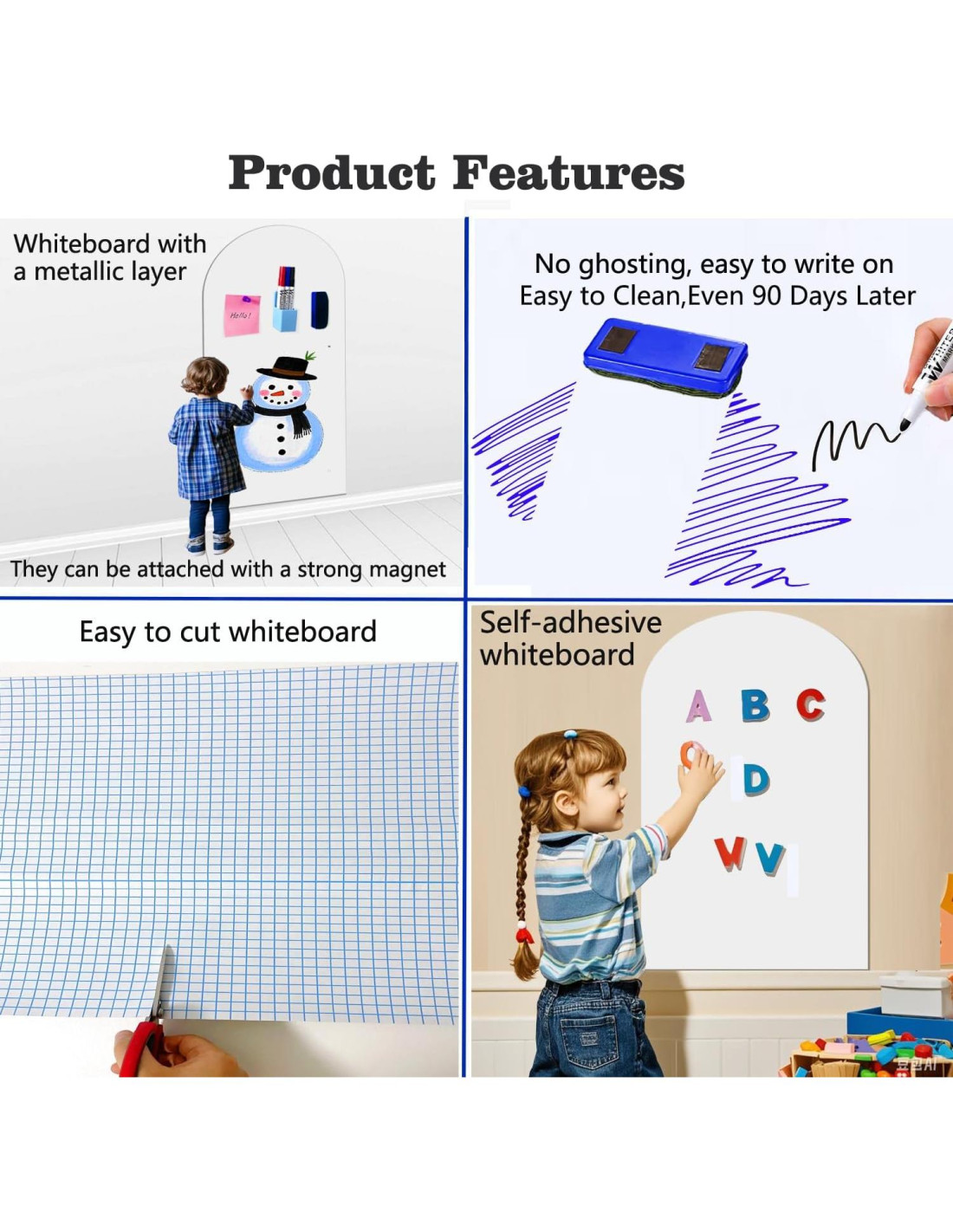 - Superfuerte magnetismo, adsorción segura: A diferencia de las pizarras blancas delgadas tradicionales, nuestra calcomanía de pizarra blanca magnética tiene una capa de metal suave de alta calidad en su interior, con un magnetismo super fuerte. Ya sean imanes de letras, imanes de números, rompecabezas, notas o fotos, todos pueden ser firmemente absorbidos sin caer o desplazarse. No solo se puede usar para escribir y grabar, sino también para mostrar creatividad y compartir información, presentando tu inspiración y recuerdos de manera intuitiva y brindándote una experiencia de usuario sin precedentes.