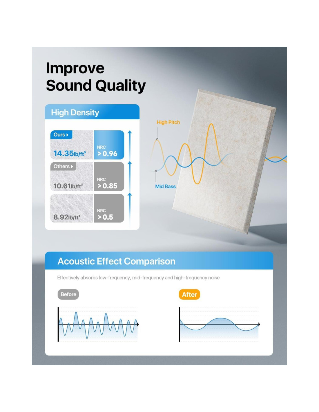 - Amplia Aplicación: Los paneles acústicos son adecuados para varios espacios, incluyendo hogares, oficinas, estudios de grabación, transmisiones en vivo y salas de conferencias; mejoran el ambiente acústico y mejoran la calidad y comodidad del sonido